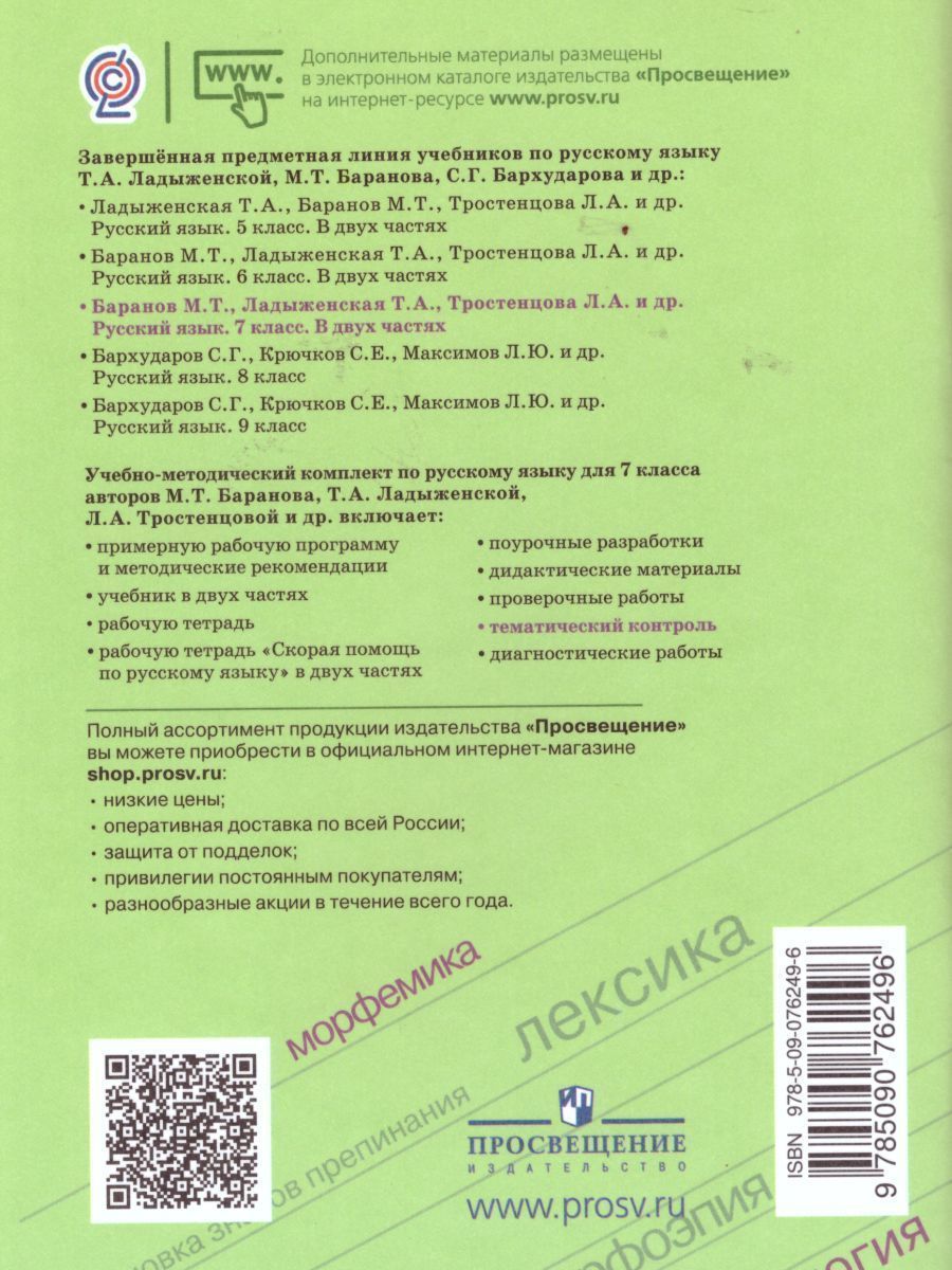 Русский язык 7 класс. Тематический контроль