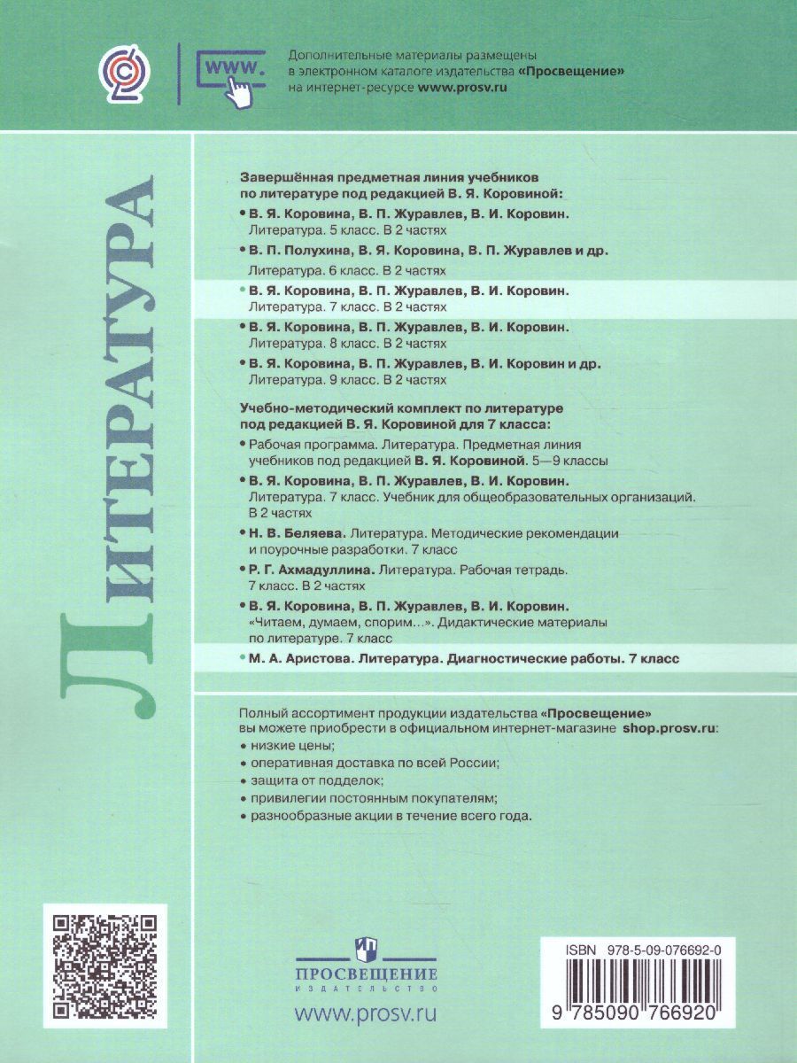 Литература 7 класс. Диагностические работы