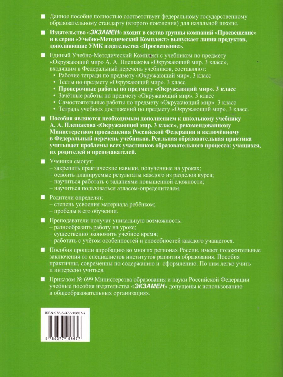 Окружающий мир 3 класс. Проверочные работы. ФГОС