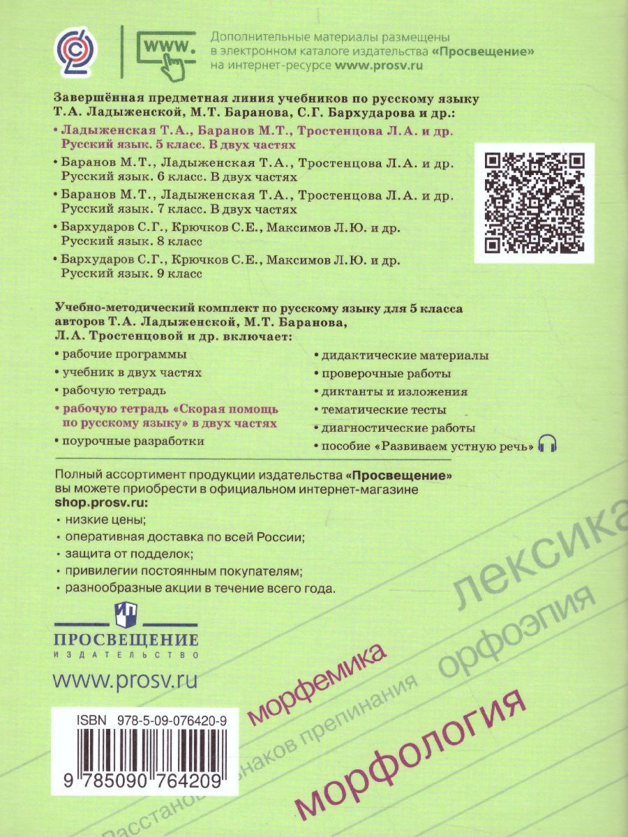 Скорая помощь по Русскому языку 5 класс. Рабочая тетрадь. Часть 2