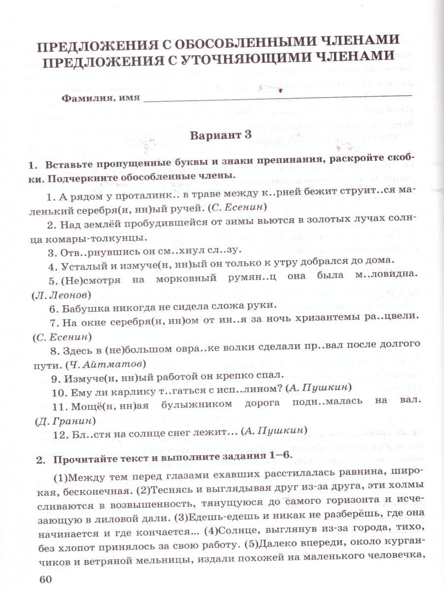 Русский язык 8 класс. Зачетные работы. ФГОС