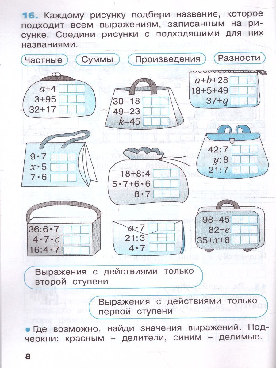 Тетради разработаны к учебнику «Математика. 2 класс» (авторы И.И. Аргинская, Е.И. Ивановская, С.Н. Кормишина). В них представлена система разнообразных по содержанию и способам выполнения тренировочных и развивающих заданий, позволяющих учителю использовать различные формы работы с учащимися, повысить интерес к изучению математики. Раскрашивая и восстанавливая рисунки, отгадывая ребусы и загадки, увлекаясь игровым сюжетом, дети производят вычисления, повторяют табличные случаи умножения и деления, решают задачи и уравнения. Задания тетрадей предназначены для организации самостоятельной работы учащихся как в классе, так и дома.Характеристики