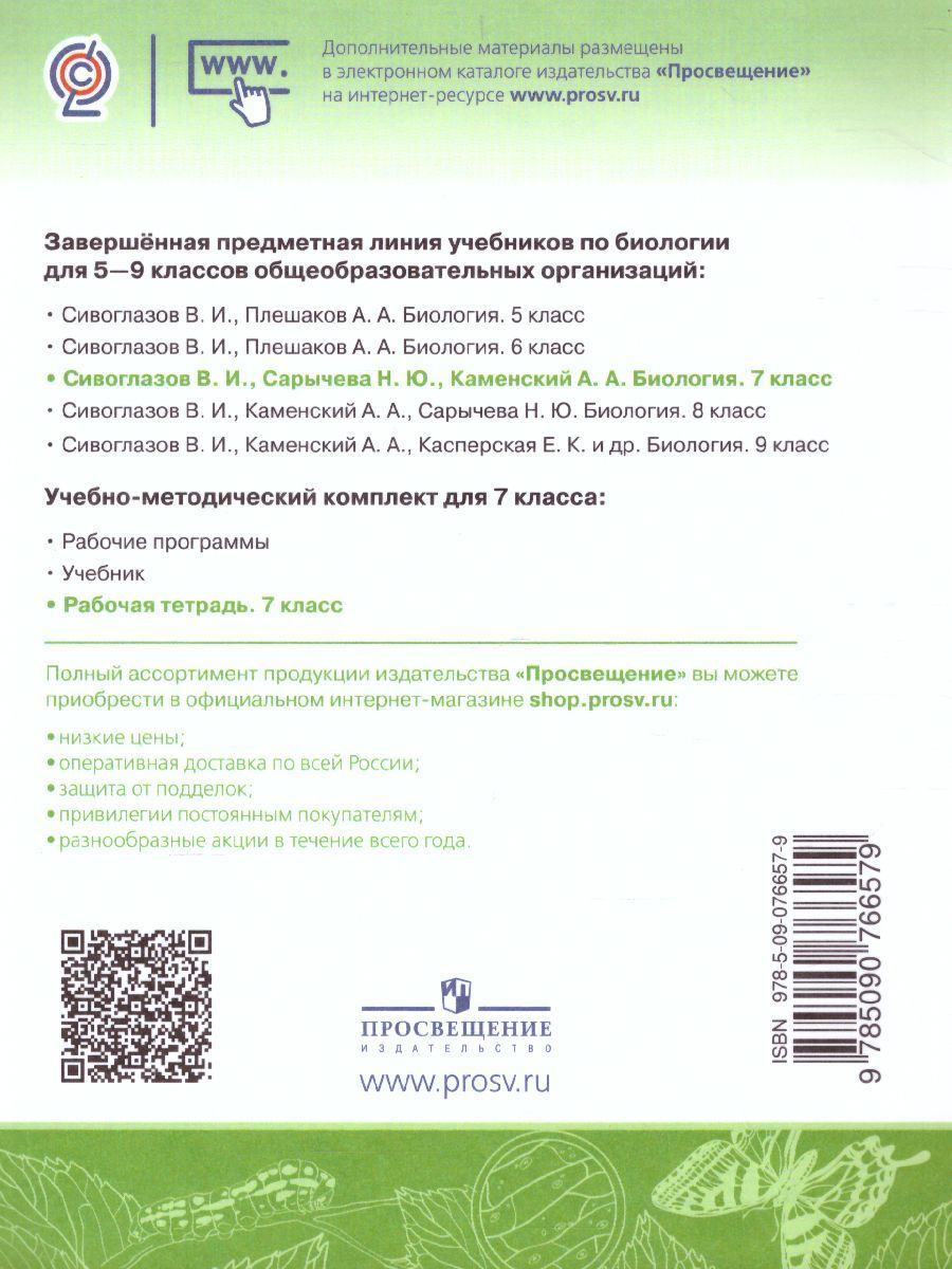 Рабочая тетрадь является составной частью учебно-методического комплекта В. И. Сивоглазова для 7 класса. Структура пособия соответствует тематической структуре учебника "Биология. 7 класс" и содержит вопросы и задания, направленные на отработку широкого спектра необходимых умений. Пособие предназначено для самостоятельной работы учащихся дома и на уроке.Характеристики