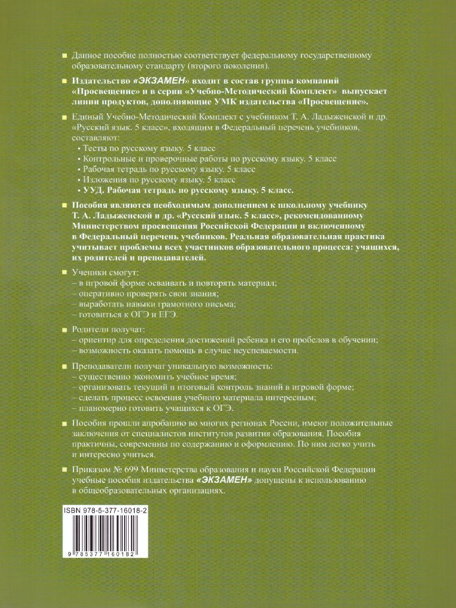Русский язык 5 класс. Рабочая тетрадь. ФГОС