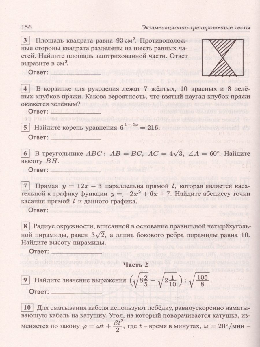 Данное пособие состоит из двух глав. Глава I содержит 64 теста. Все тесты данного пособия попарно подобны - тест № 2 подобен тесту № 1, тест № 4 подобен тесту № 3 и т.д. Одним из преимуществ данной книги является особенная "парность" заданий "части С", т.е. заданий с развёрнутым ответом. Большинство заданий "части С" данной книги таково, что "парная" задача развивает идею задачи из предыдущего теста. Поэтому для решения "парной" задачи недостаточно лишь поменять цифры в решении аналогичной задачи предшествующего теста, а придётся заново продумывать некоторые детали и нюансы. Решая задания "части С" из этой книги, школьник учится преодолевать психологический барьер - состояние "изменённой ситуации" при решении задачи, т.е. такой ситуации, с которой он сталкивается впервые. В главе II приведён задачник, содержащий 110 заданий с развёрнутым ответом. Решения ко всем тестам с нечётными номерами (т.е. решения к тестам №1, №3 и т.д.) приведены в Решебнике к данной книге, который выпускается одновременно с ней. Также в этом Решебнике приведены указания к решениям задач №16 (планиметрия) и №19 (олимпиадная тематика) тестов с чётными номерами и решения всех задач с нечётными номерами из Задачника.Характеристики