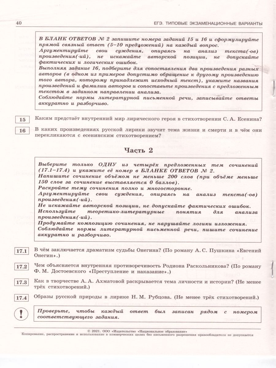 ЕГЭ 2021. Литература. 10 вариантов