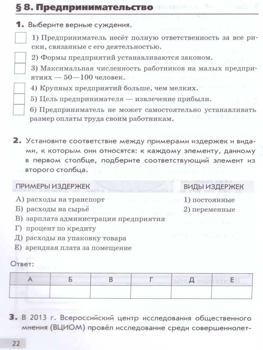 Рабочая тетрадь входит в состав УМК по обществознанию А. И. Кравченко, Р. И. Хасбулатова, Е. А. Певцовой и др., соответствует ФГОС основного общего образования, содержанию и структуре учебника для 8 класса. Тетрадь предназначена для проверки и закрепления знаний учащихся, подготовки к ВПР, ОГЭ и ЕГЭ по обществознанию. Она содержит различные виды заданий, проблемные вопросы, дополнительные тексты, иллюстрации, диаграммы. Условными знаками отмечены задания повышенной сложности, а также задания в формате Международной программы по оценке образовательных достижений учащихся (PISA), направленные на формирование функциональной грамотности.Характеристики