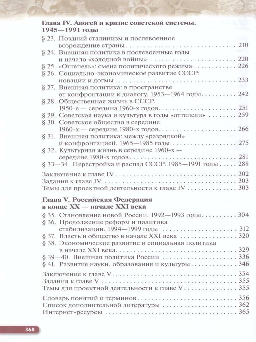 Учебник, подготовленный в соответствии с ИКС, охватывает период отечественной истории с 1914 г до начала XXI века. Содержание учебника направлено на развитие познавательных интересов учащихся. В основе методики учебника системно-деятельностный подход, способствующий формированию умений самостоятельно работать с информацией и использовать ее в практической деятельности.Характеристики