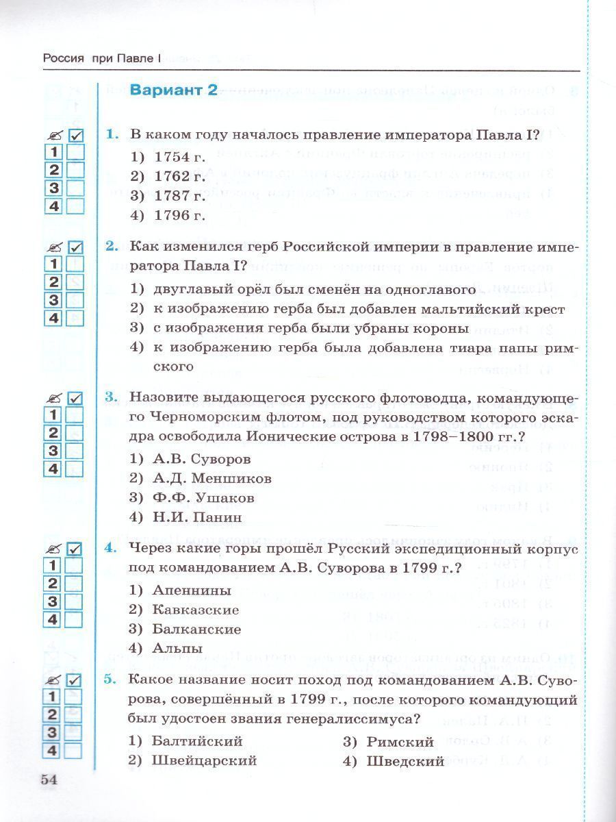 История России 8 класс. Тесты. Часть 2. ФГОС