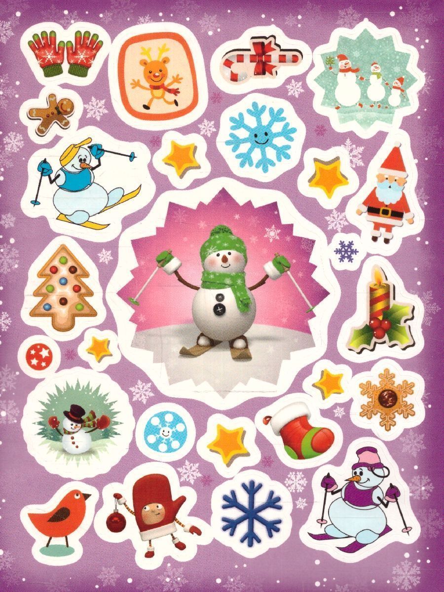 Наклейки 100 зимних наклеек (фиолетовая) (Росмэн)