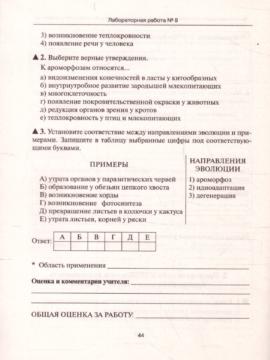 Пособие написано в полном соответствии с учебной программой и предназначен для эффективного выполнения учащимися лабораторных работ. Оно посвящено объёмному и сложному разделу биологии - "Общая биология" - и содержит 10 лабораторных работ. Сборник включает методические рекомендации по выполнению лабораторных работ по курсу общей биологии, комментарии по выполнению практической части лабораторной работы и тренировочные задания. Материалы пособия не только вооружают школьников необходимыми в жизни биологическими знаниями, но и помогают освоить полезные компетенции: самостоятельно ставить эксперимент, фиксировать и обрабатывать результаты, логически мыслить, делать сопоставления, выводы, развивать наблюдательность. Представленные в сборнике материалы помогут учителю сконцентрировать внимание школьников на наиболее сложных, значимых, ключевых понятиях общей биологии, а также проверить объём и качество приобретённых школьником знаний с помощью диагностических материалов. Наличие заданий в формате ОГЭ поможет подготовить девятиклассников к этой форме итоговой аттестации.Характеристики
