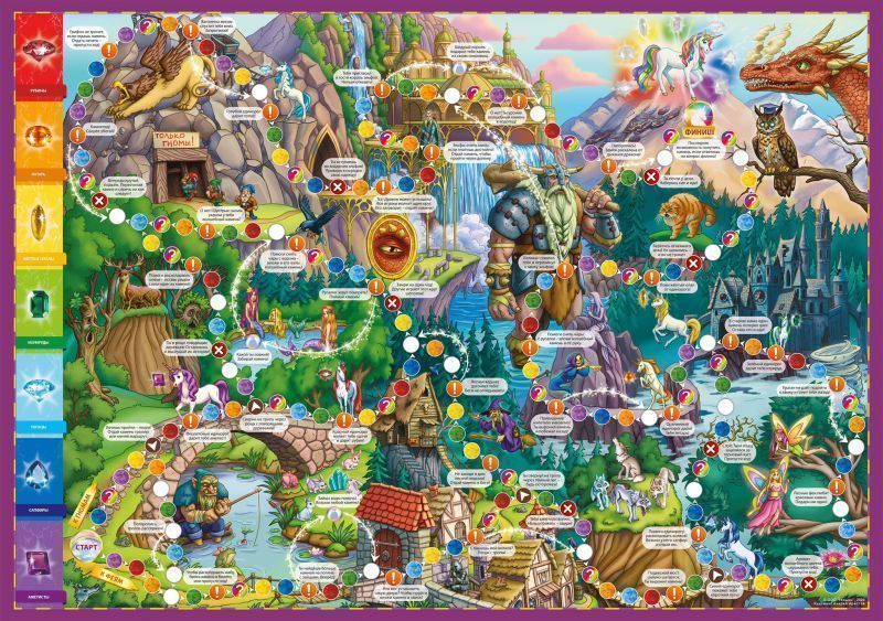«Волшебный мир единорогов» не просто настольная игра-ходилка - это дверь в сказочный мир! Теперь ребенок может легко попасть в страну единорогов и изучить все ее тайны. Что случилось в заколдованном лесу? Почему над ним больше нет радуги? Как спасти волшебный мир и заколдовать дракона? Игра интригует на каждом ходу. Яркие и интересные иллюстрации поля можно рассматривать часами. Плюс в дополнение, викторина и задания. Все это в одной игре.Характеристики