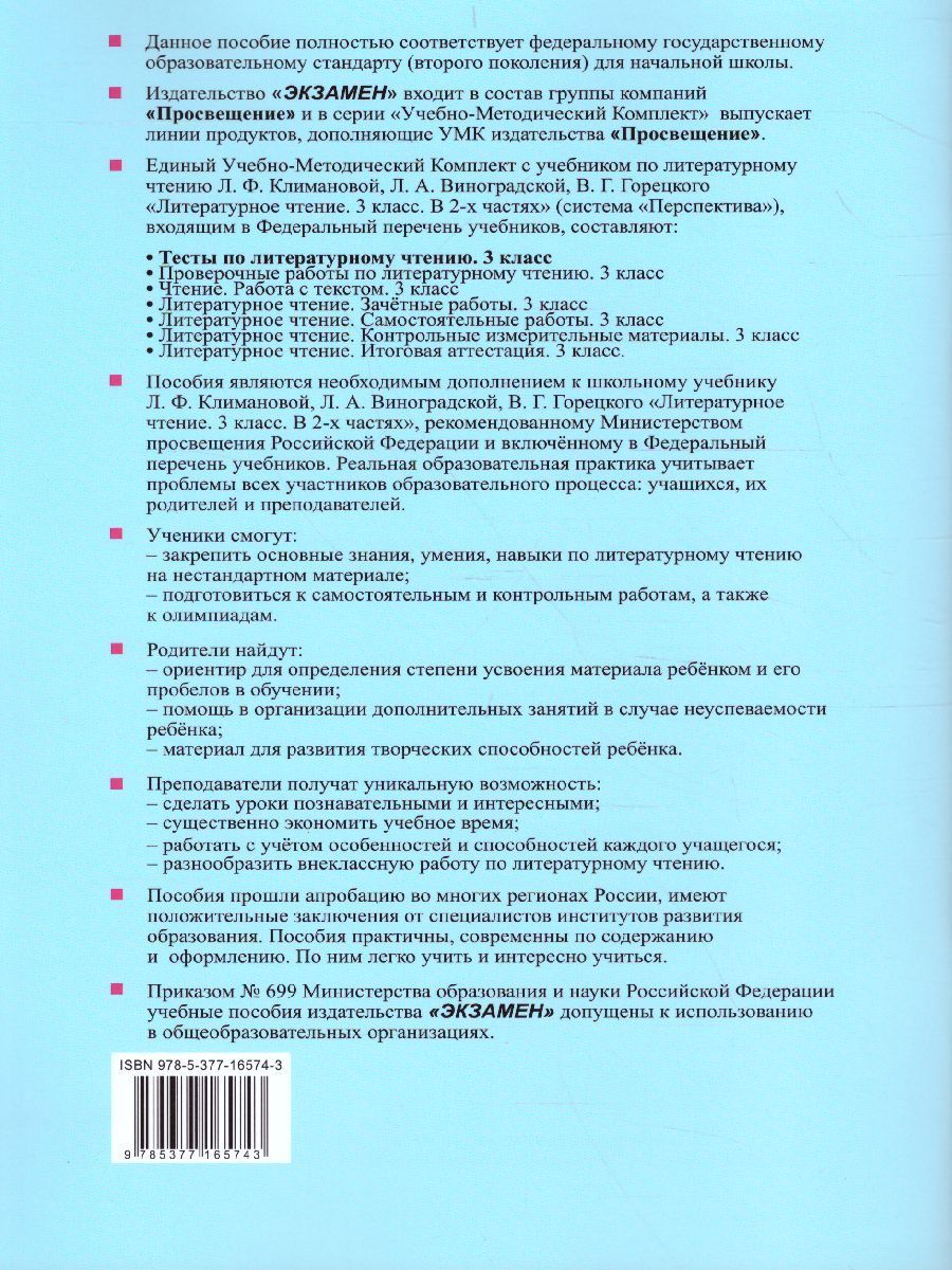 Литературное чтение 3 класс. Тесты. ФГОС