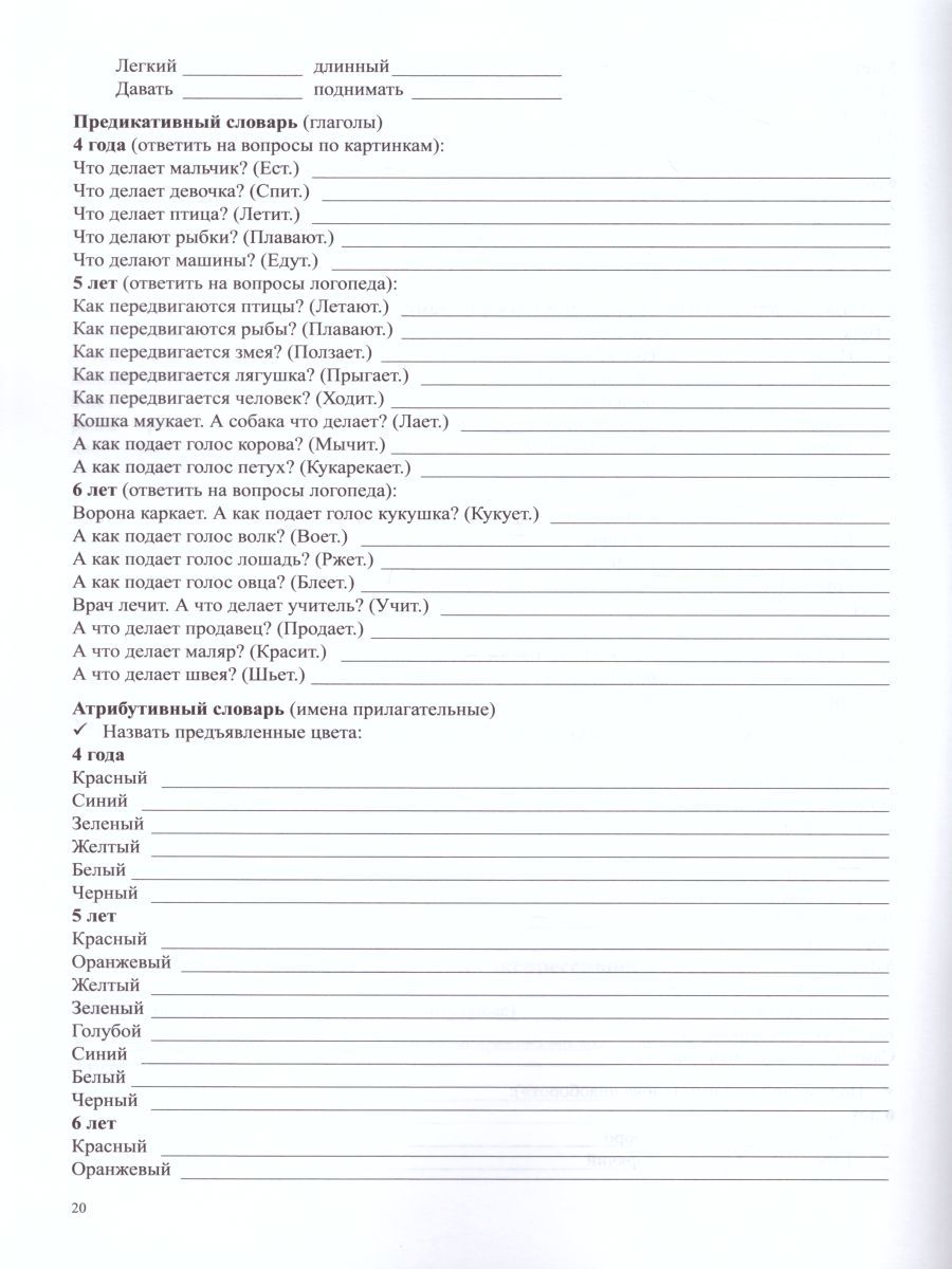 Речевая карта ребенка с общим недоразвитием речи 4-7 лет
