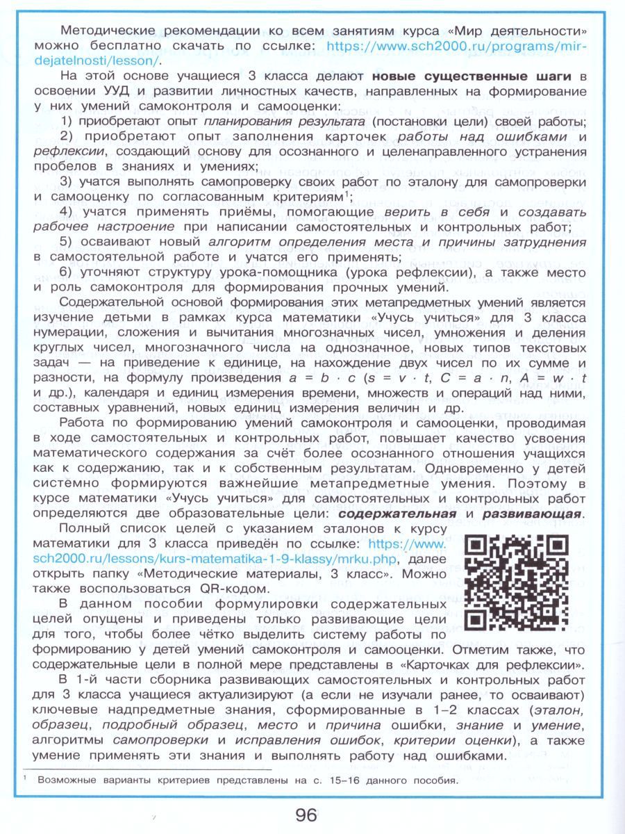 Учебное пособие содержит развивающие самостоятельные и контрольные работы по курсу математики «Учусь учиться» для 3 класса, часть 1 (автор Л. Г. Петерсон). Наряду с системным тренингом, самоконтролем и контролем математических знаний и умений учащихся 3 класса, пособие позволяет организовать поэтапное формирование у детей важных для дальнейшего обучения и жизни умений самоконтроля. Является частью целостного учебно-методического комплекса по математике «Учусь учиться» для дошкольников, учащихся начальной и основной школы 1–9 (от 3 до 15 лет). Соответствует федеральному государственному образовательному стандарту начального общего образования. Реализует дидактическую систему Л. Г. Петерсон. Может использоваться во всех типах школ и для индивидуальной работы с детьми. Методическую поддержку по реализации УМК «Учусь учиться» осуществляет НОУ ДПО «Институт системно-деятельностной педагогики».Характеристики