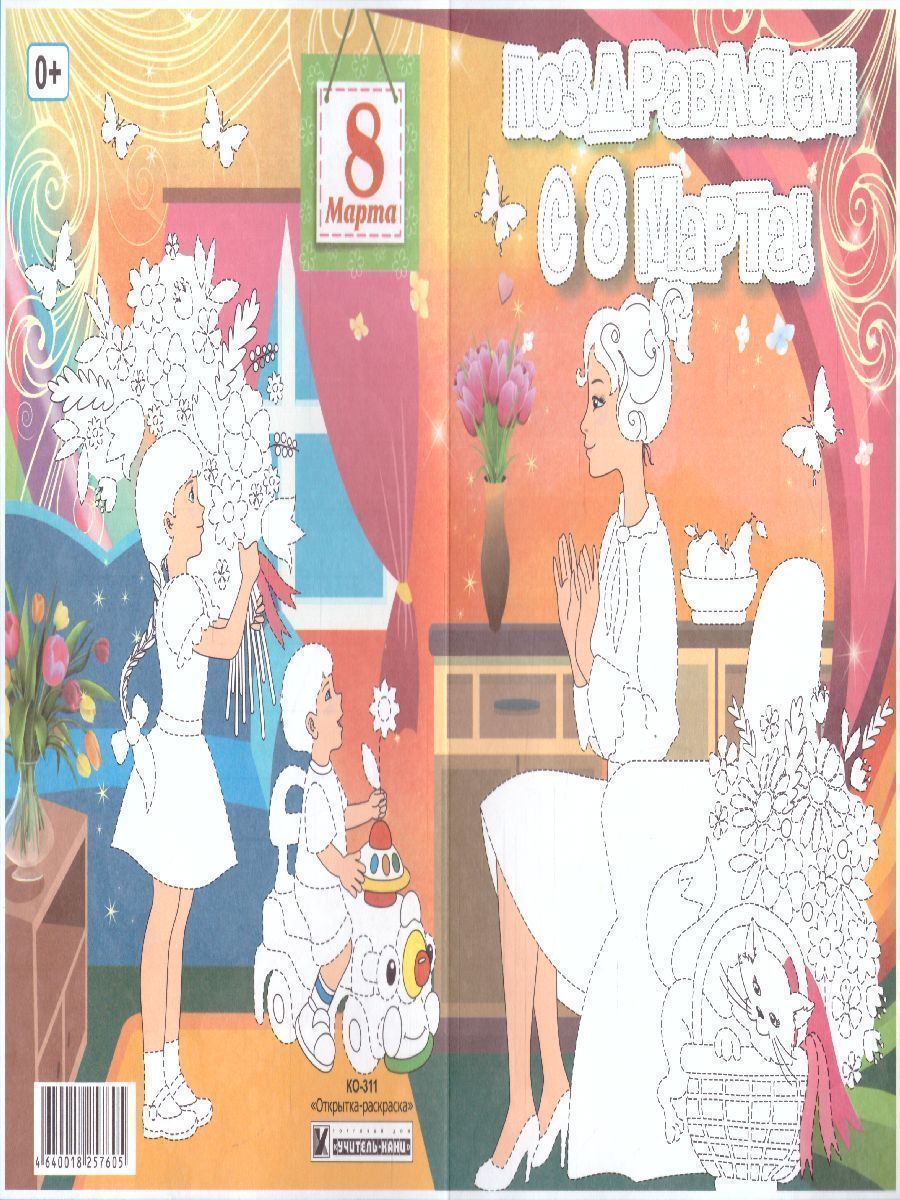 Открытка-раскраска "Поздравляем с 8 Марта!"