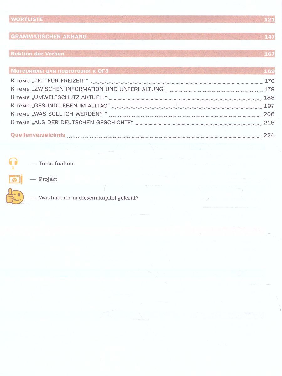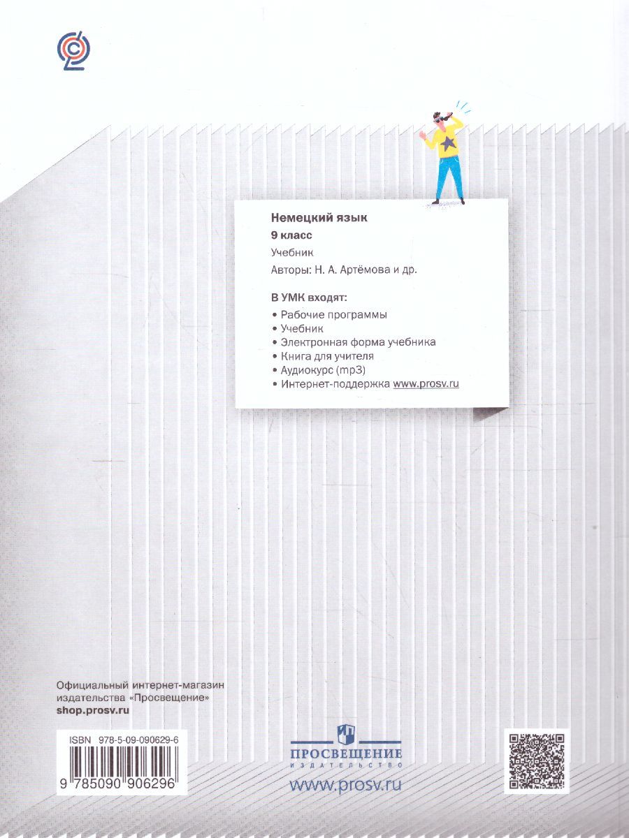 Учебник для 9 класса новой завершённой линии по немецкому языку для 5–9 классов создан с учётом возрастных и психологических особенностей школьников, их интересов и потребностей, направлен на развитие индивидуальных способностей каждого обучающегося. Отбор материала учебника, создание ситуаций общения, максимально приближенных к реальной коммуникации школьников, различные формы взаимодействия учащихся (работа в парах, мини-группах и т. п.), включение в процесс обучения познавательных игр, творческих и проектных заданий, социокультурная направленность и диалог культур – необходимые составляющие для успешного овладения овладения немецким языком. Учебник для 9 класса разработан в соответствии с ФГОС ООО, примерной основной образовательной программой основного общего образования и рассчитан на 3 часа в неделю. В состав УМК для 9 класса входит учебник, книга для учителя, аудиоприложение, рабочая программаХарактеристики