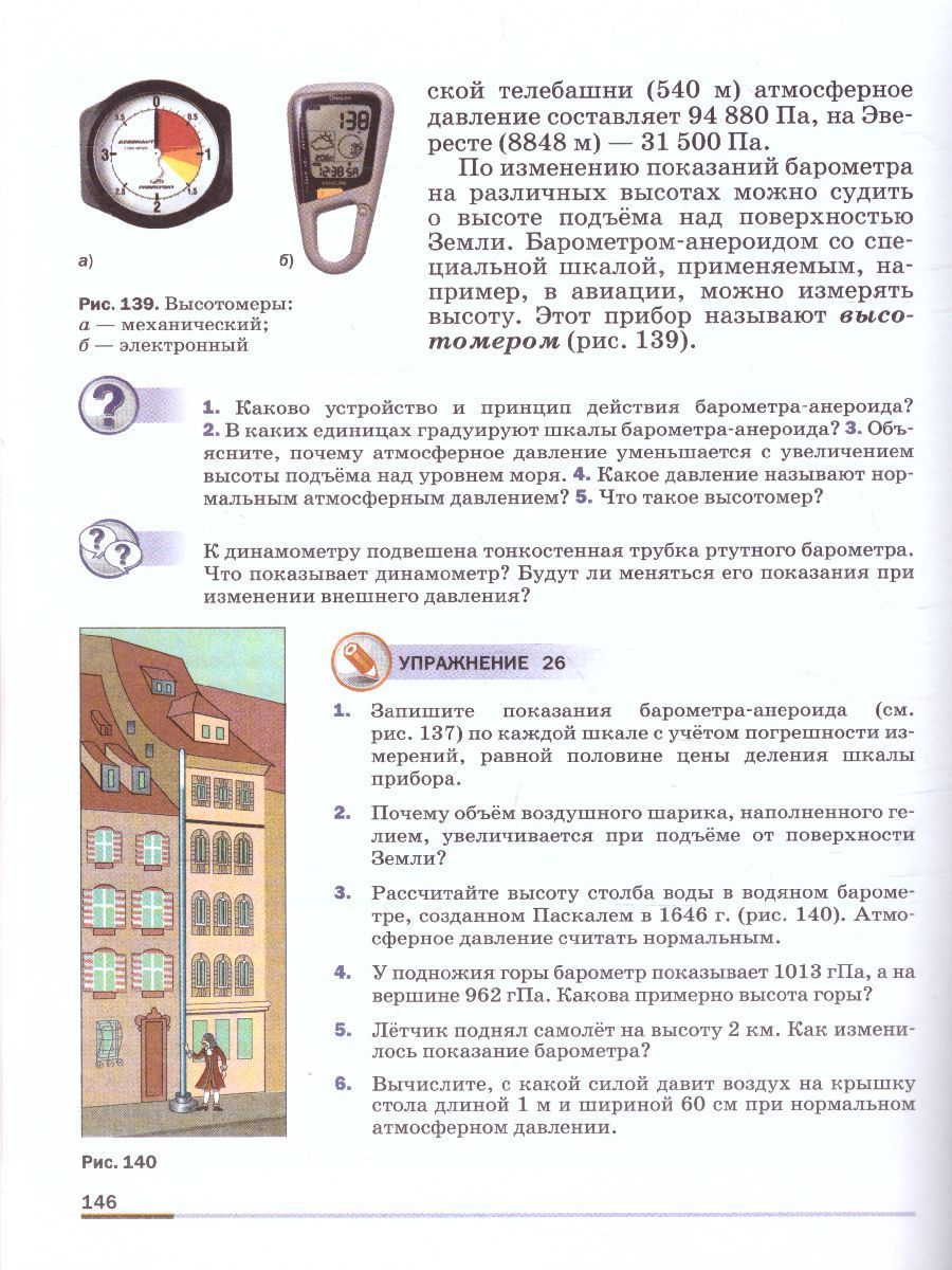 Учебник предназначен для учащихся 7 классов и содержит следующие темы: «Физика и её роль в познании окружающего мира», «Первоначальные сведения о строении вещества», «Взаимодействие тел», «Давление твердых тел, жидкостей и газов» и «Работа и мощность. Энергия». Методический аппарат учебника составляют вопросы для самопроверки, вопросы для коллективного обсуждения, упражнения, включающие вычислительные и графические задачи, система заданий экспериментального, исследовательского, проектного и графического характера, описания лабораторных работ. Материал рубрики «Это любопытно» позволит учащимся расширить свой кругозор. В конце каждой темы имеется рубрика «Итоги главы», в которую помещены задачи на формирование естественнонаучной грамотности, темы проектов и исследований. Большое количество красочных иллюстраций, разнообразные вопросы и задания, а также дополнительные сведения и любопытные факты способствуют эффективному усвоению учебного материала. Достоинством учебника является доступное научное изложения материалаХарактеристики