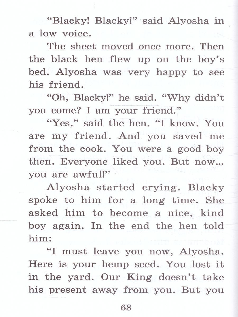 Учебное пособие представляет собой адаптацию известной сказки русского писателя Антония Погорельского (1787 – 1836) «Черная курица, или Подземные жители». Эта увлекательная история о десятилетнем мальчике, который попадает в подземное королевство, получает в подарок чудесный дар, а потом теряет друга из-за своего малодушия. Сказка учит детей честности, верности и доброте. После каждой главы предлагаются упражнения, направленные на расширение лексического запаса, отработку грамматических конструкций и развитие навыков устной речи. Новые слова включены в словарь, который помещен в конце книги. Пособие рассчитано на учащихся 3-4 классов школ, гимназий и лицеев.Характеристики