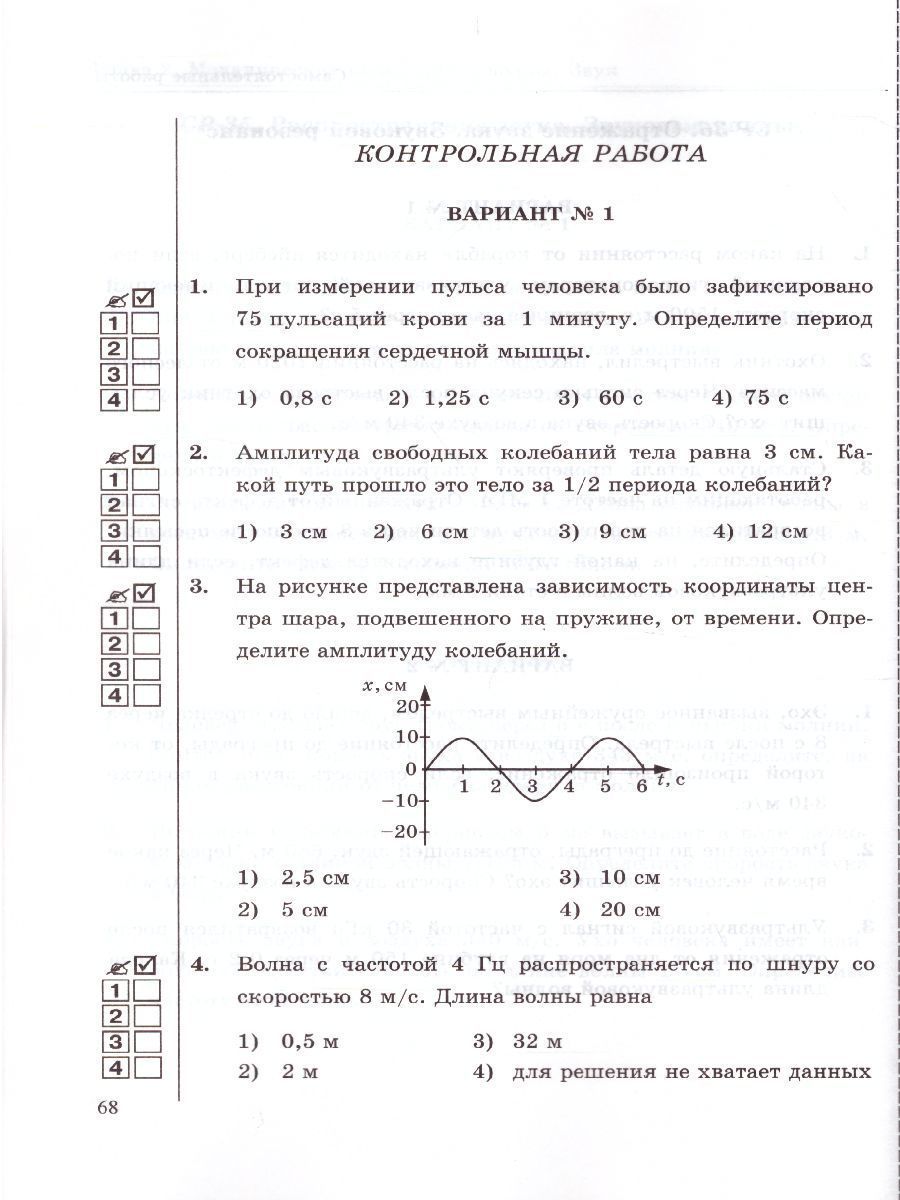 Данное пособие полностью соответствует федеральному государственному образовательному стандарту (второго поколения). Издание предназначено для проверки знаний учащихся по курсу физики 9 класса. Оно ориентировано на учебник А. В. Перышкина "Физика. 9 класс" и содержит контрольные работы по всем темам, изучаемым в 9 классе, а также самостоятельные работы. Контрольные работы даются в четырех вариантах, каждый вариант включает разноуровневые задачи, структура которых подобна формату ОГЭ и ЕГЭ. Пособие поможет оперативно выявить пробелы в знаниях и адресовано как учителям физики, так и учащимся для самоконтроля.Характеристики