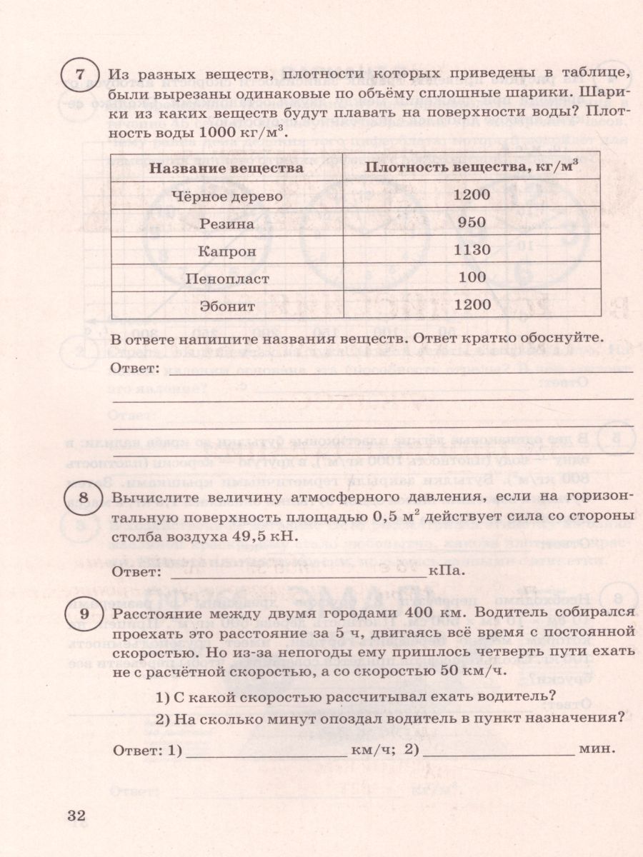 ВПР Физика 7 класс. 15 вариантов ЦПМ СТАТГРАД ТЗ ФГОС