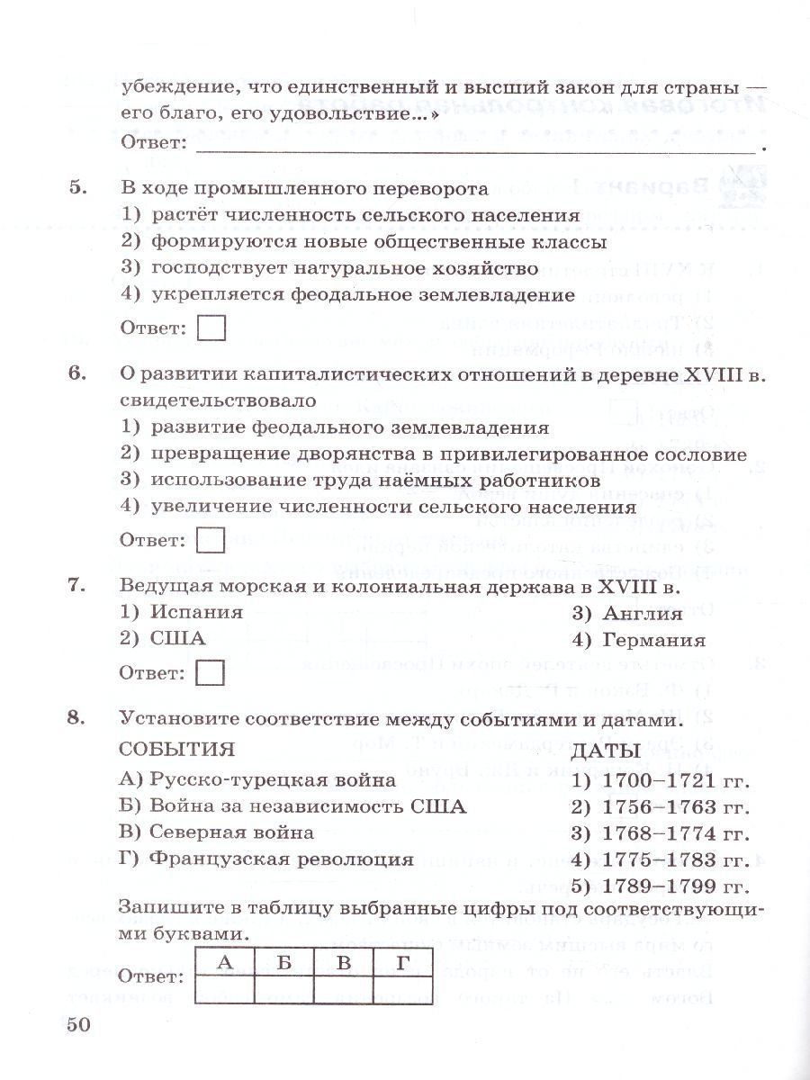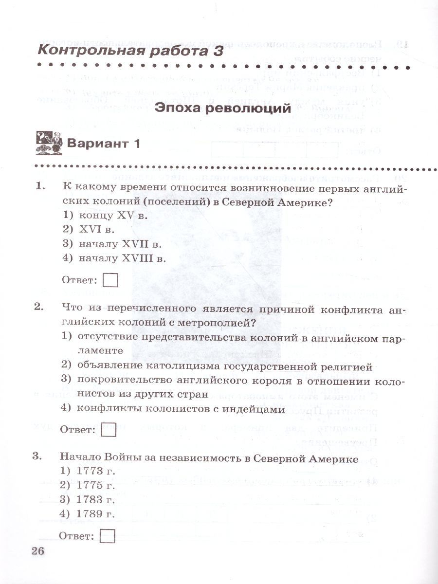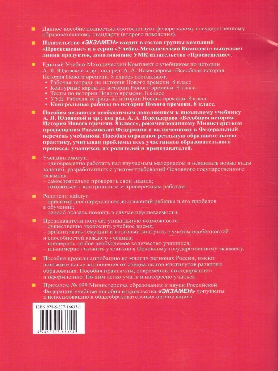 История нового времени 8 класс. Контрольные работы. ФГОС