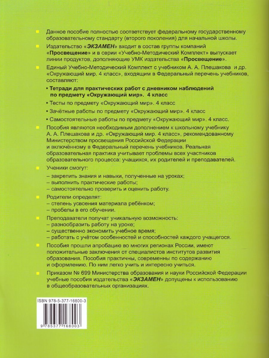 Окружающий мир 4 класс. Тетрадь для практических работ с дневников наблюдений. Часть 1. ФГОС