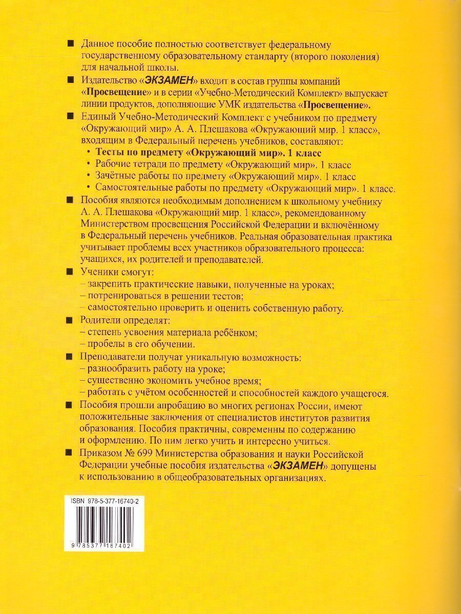 Данное пособие полностью соответствует федеральному государственному образовательному стандарту (второго поколения) для начальной школы. В предлагаемом пособии представлены тесты по всем темам учебного комплекта А.А. Плешакова "Окружающий мир. 1 класс". Этот материал также может быть использован учителями, работающими по другим учебникам.Характеристики