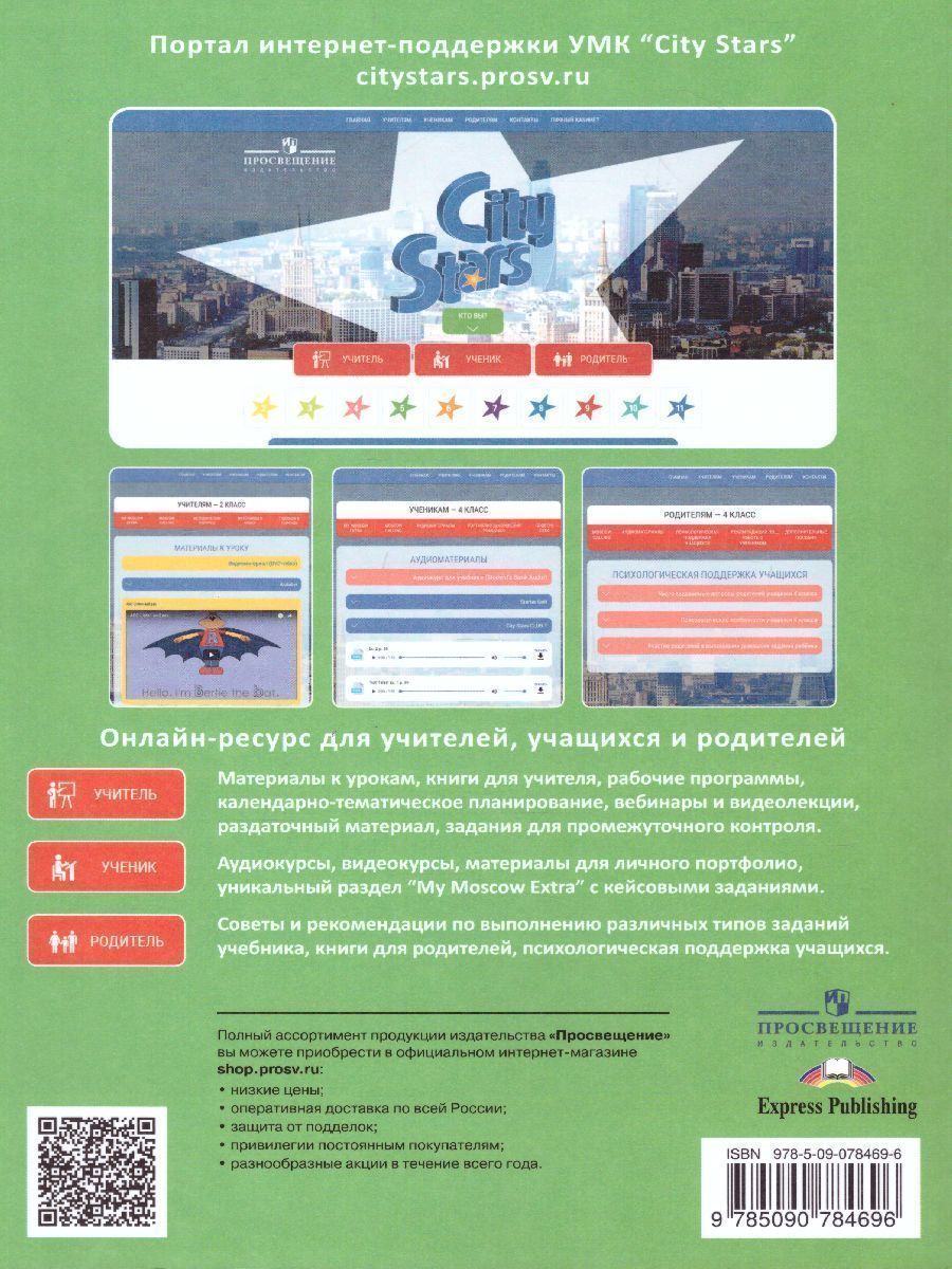 Учебное пособие является центральным элементом учебно-методического комплекта серии «Звёзды моего города» для учащихся 5 класса общеобразовательных организаций. Отличительной особенностью УМК является модульное построение учебного пособия, наличие аутентичного материала о России и Москве, заданий, соответствующих требованиям международных экзаменов, готовящим постепенно к Государственной итоговой аттестации в 9 классе. Материалы учебного пособия способствуют достижению личностных, метапредметных и предметных результатов обучения.Характеристики