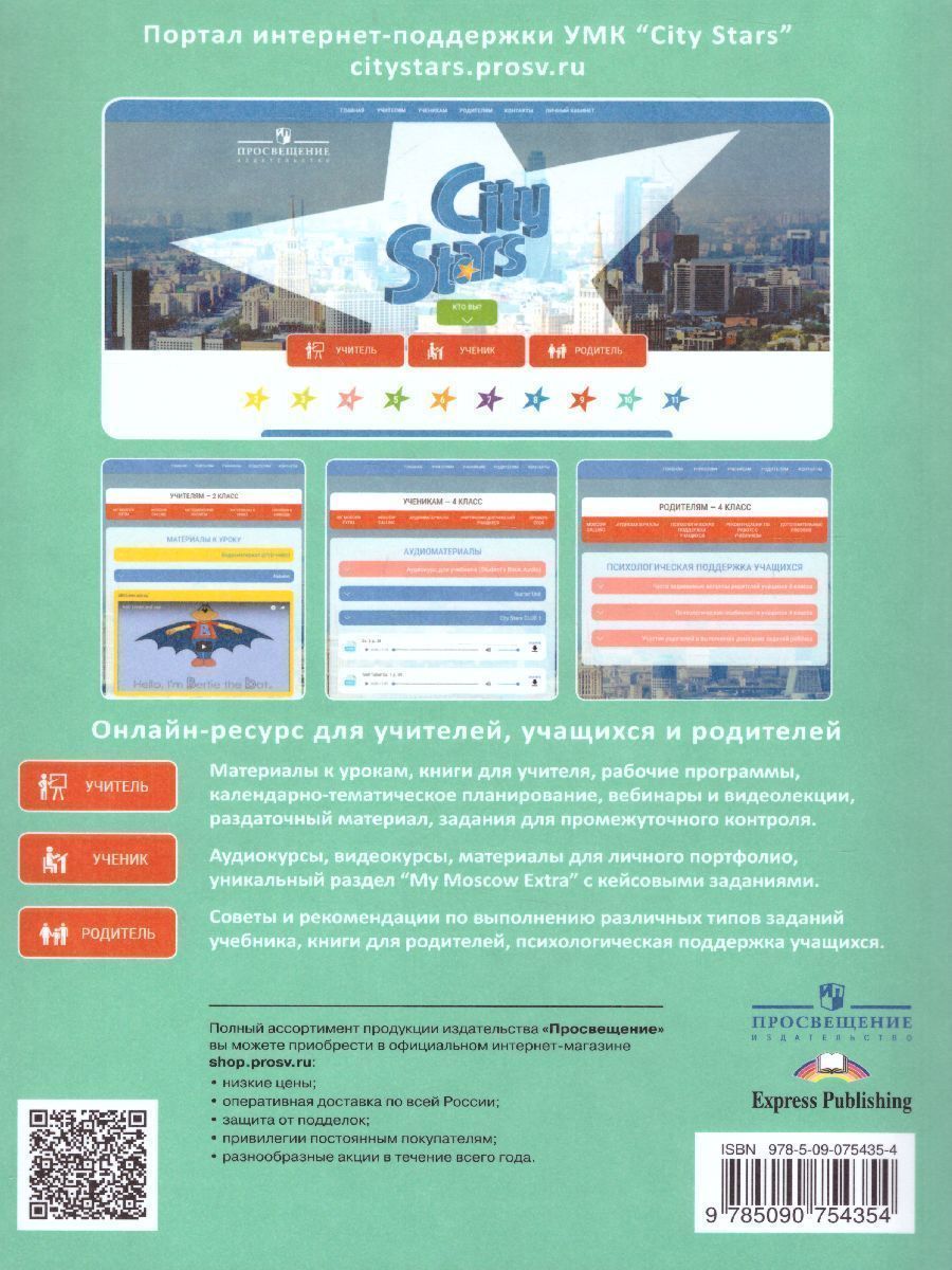 Учебное пособие является центральным элементом учебно-методического комплекта серии «Звёзды моего города» для 10 класса общеобразовательных организаций. Отличительными особенностями учебного пособия являются: модульное построение, наличие аутентичного материала о России и Москве, заданий, целенаправленно готовящих к Единому государственному экзамену по английскому языку. Материалы учебного пособия способствуют достижению личностных, метапредметных и предметных результатов обучения.Характеристики