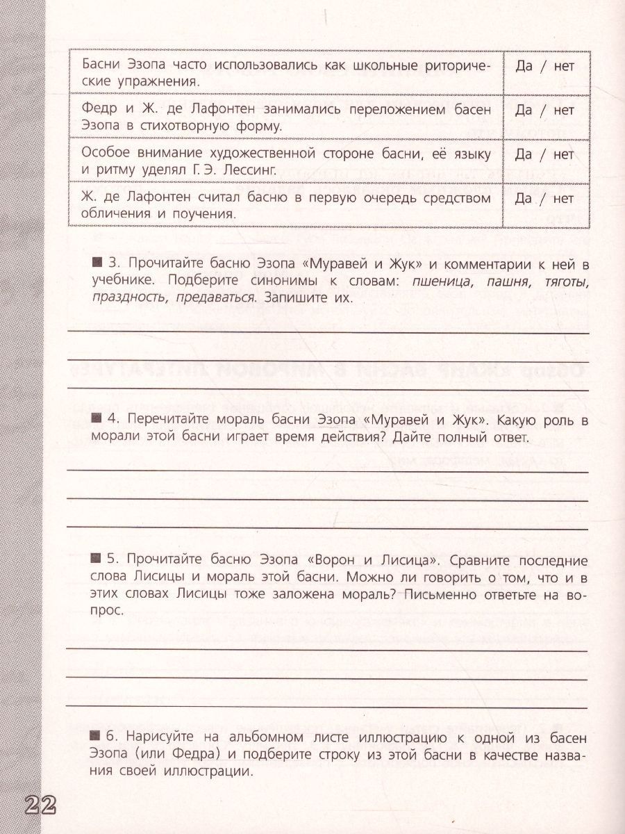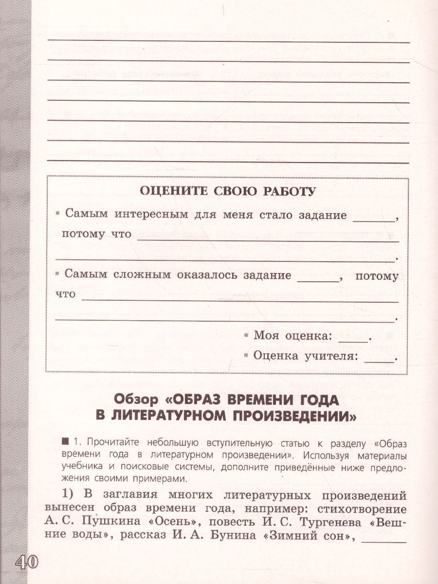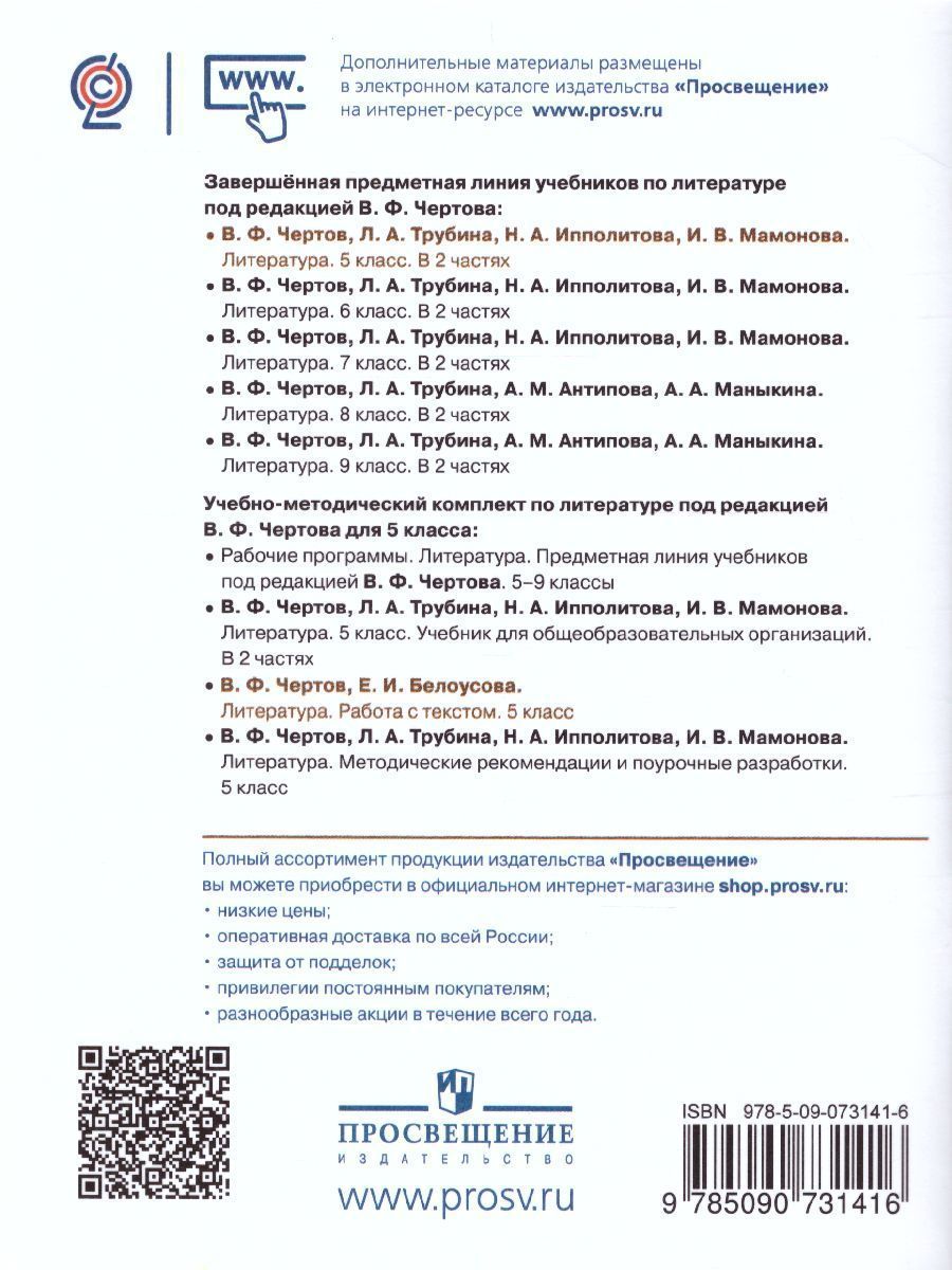 Литература 5 класс. Работа с текстом
