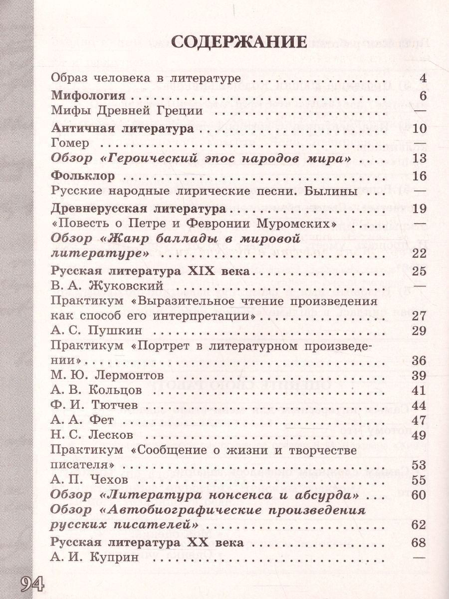 Литература 6 класс. Работа с текстом