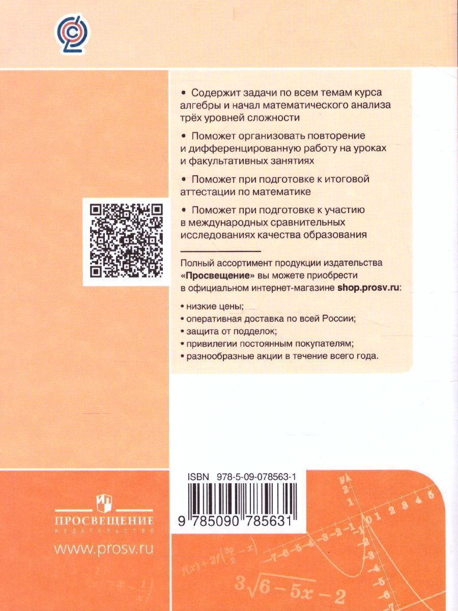 В данном учебном пособии содержатся задачи по курсу алгебры и началам математического анализа для 10—11 классов трёх уровней сложности в соответствии с концепцией математического образования. Задания уровня A можно использовать для отработки базовых математических навыков. Задания уровня B будут полезны учащимся, стремящимся продолжить образование в технических и экономических вузах (а также вузах со схожими требованиями к математической подготовке абитуриентов). Задания уровня C предназначены для учащихся, планирующих продолжить своё образование в вузах с повышенными требованиями к математической подготовке абитуриентов. Книга будет полезна учащимся и учителям при подготовке к участию в международных сравнительных исследованиях качества образования, итоговой аттестации по математике, организации повторения и дифференцированной работы на уроках и факультативах.Характеристики