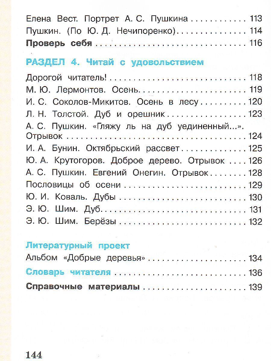 Учебник создаёт условия для формирования читательской компетентности младшего школьника. Предназначен для системной работы с различными видами информации (художественными и познавательными текстами), формирования способов смыслового чтения (в частности, способа синтагматического чтения, анализа и интерпретации текстов), универсальных учебных действий, воспитания нравственных качеств эстетически развитого читателя. Учебник создаёт условия для мотивации к изучению других предметов начальной школы, проектирования и исследовательской деятельности младшего школьника. Обеспечивает реализацию системно-деятельностного подхода на уроках благодаря представленной системе открытия литературоведческих понятий самим читателем. Особенностями учебника является его коммуникативная направленность, особая подача материала в задачной форме с целью открытия общих закономерностей любого текста, а также создания собственных высказываний обучающихся.Характеристики