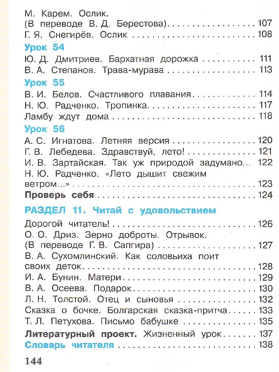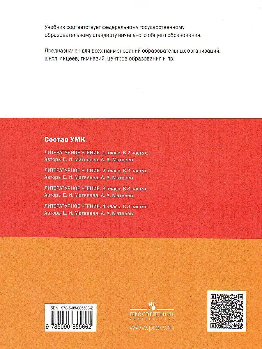 Учебник создаёт условия для формирования читательской компетентности младшего школьника. Предназначен для системной работы с различными видами информации (художественными и познавательными текстами), формирования способов смыслового чтения (в частности, способа синтагматического чтения, анализа и интерпретации текстов), универсальных учебных действий, воспитания нравственных качеств эстетически развитого читателя. Учебник создаёт условия для мотивации к изучению других предметов начальной школы, проектирования и исследовательской деятельности младшего школьника. Обеспечивает реализацию системно-деятельностного подхода на уроках благодаря представленной системе открытия литературоведческих понятий самим читателем. Особенностями учебника является его коммуникативная направленность, особая подача материала в задачной форме с целью открытия общих закономерностей любого текста, а также создания собственных высказываний обучающихся.Характеристики