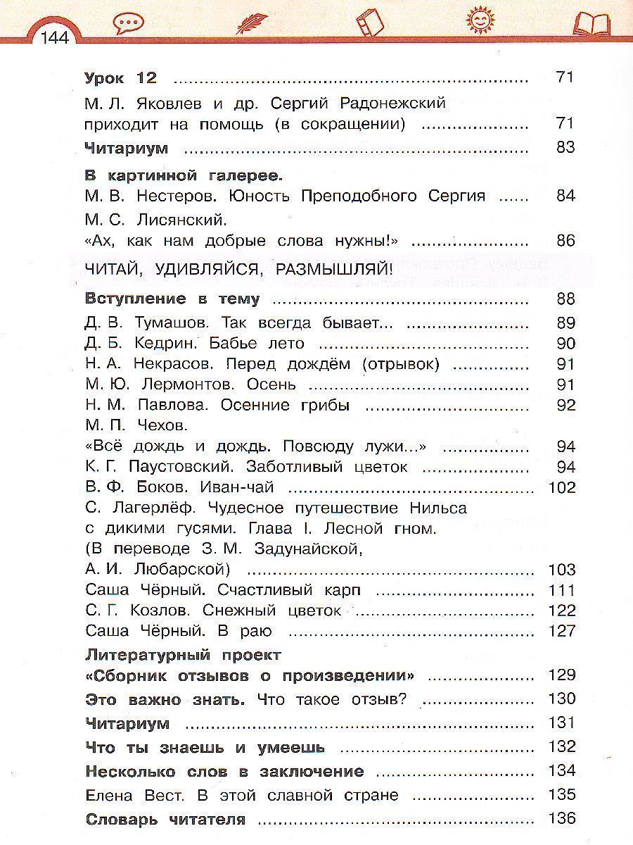 Содержание учебника направлено на воспитание эстетически развитого читателя. На основе различных видов текстов вырабатываются умения смыслового чтения, создаются условия для проектной, исследовательской и творческой деятельности младших школьников. Особенность учебника — системно-деятельностный подход, который предполагает освоение обучающимися обобщённых способов действия, формирование основ теоретического и творческого мышления и совместную творческую и проектно-исследовательскую деятельность.Характеристики