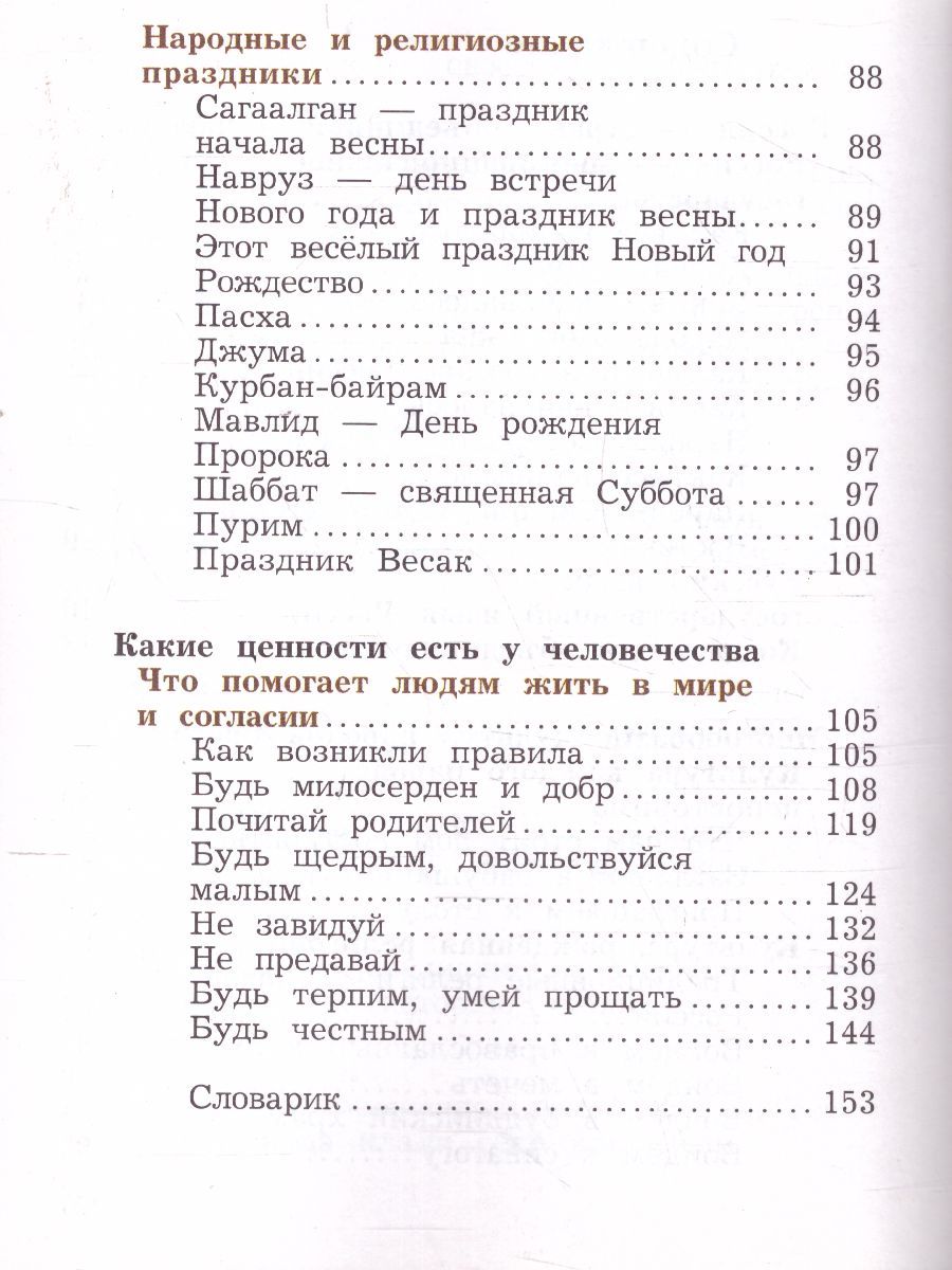 Учебник даёт четвероклассникам возможность узнать об особенностях культуры народов России, понять нравственные ценности, которые приобрели характер общечеловеческих. Младшие школьники познакомятся с традиционными религиями, которые исповедуют народы России, осознают вклад каждой религии в становление и развитие культуры нашей страны и всего мира. Курс воспитывает добрые чувства, толерантность и интерес к культуре разных народов. Учебник предназначен для работы в первом полугодии. Во втором полугодии обучение осуществляется по модулям (по выбору) «Основы православной культуры», «Основы исламской культуры», «Основы мировых религиозных культур», «Основы светской этики». Учебник соответствует Федеральному государственному образовательному стандарту начального общего образования.Характеристики