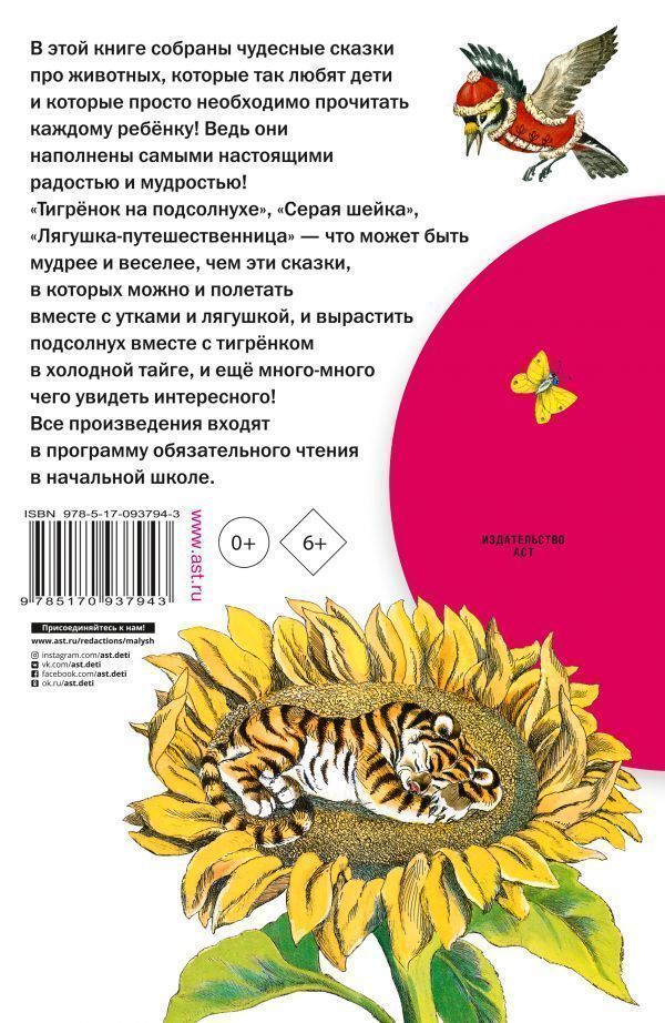 В книгу "Лягушка-путешественница и другие сказки о животных" вошли самые интересные сказки известных детских писателей Бориса Заходера, Ю. Коваля, М. Гаршина, Д.Н. Маминого-Сибиряка и Л. Пантелеева. Вошедшие в эту книгу произведения "Серая шейка", "Русачок", "Тигрёнок на подсолнухе", снабжены великолепными иллюстрациями В. Каневского, Л. Казбековой, А. Ивашенцовой и других художников-иллюстраторов. Все произведения входят в программу обязательного чтения в начальной школе. Для младшего школьного возраста.Характеристики