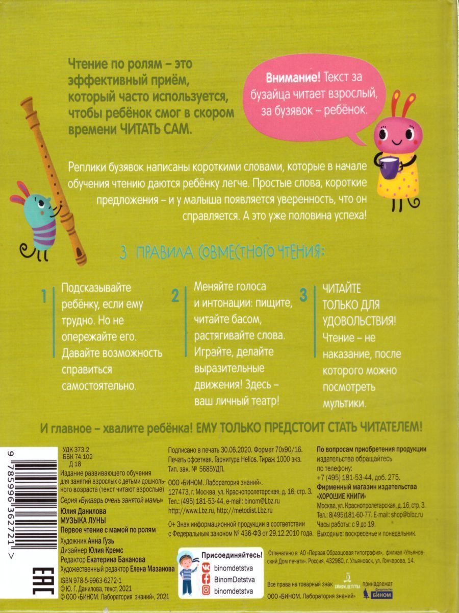 Бузявки свалились на Землю с Луны, совсем ничего не знают и все путают. Совсем как наши малыши. Вместе смеемся над их приключениями и незаметно осваиваем навык самостоятельного чтения. Чтение по ролям – это эффективный приём, который часто используется, чтобы ребёнок смог в скором времени ЧИТАТЬ САМ. Текст за бузайца читает взрослый, за бузявок – ребёнок. Реплики бузявок написаны короткими словами с преимущественно закрытыми слогами, которые в начале обучения чтению даются ребёнку легче. Простые слова, короткие предложения – и у малыша появляется уверенность, что он справляется. А это уже половина успеха! Подсказывайте ребёнку, если ему трудно. Но не опережайте его. Давайте возможность справиться самостоятельно. Меняйте голоса и интонации: пищите, читайте басом, растягивайте слова. Играйте, делайте выразительные движения! Здесь – ваш личный театр! ЧИТАЙТЕ ТОЛЬКО ДЛЯ УДОВОЛЬСТВИЯ! Чтение – не наказание, после которого можно посмотреть мультики. И главное – хвалите ребёнка! ЕМУ ТОЛЬКО ПРЕДСТОИТ СТАТЬ ЧИТАТЕЛЕМ!Характеристики