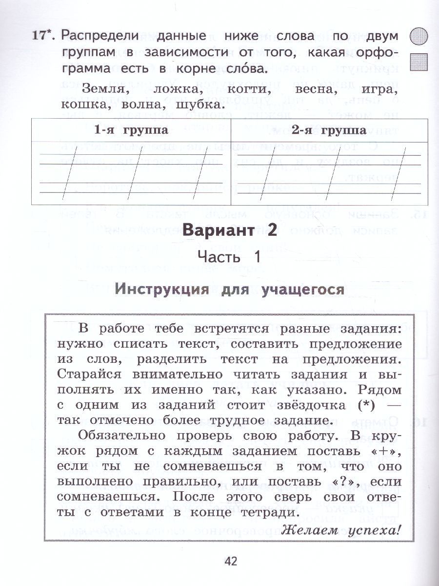 Разноуровневые проверочные работы направлены на оценивание достижения планируемых результатов по русскому языку учащимися 2 класса в начале и в конце учебного года. В пособии представлено пять проверочных работ в двух вариантах, равнозначных по степени сложности. Работы № 1-2 могут быть предложены для выполнения учащимся в начале I четверти для определения уровня успешности обучения в 1 класса, работы № 3-5 целесообразно провести в III-IV четвертях. Полученные результаты позволят педагогу, их родителям и самим учащимся увидеть степень освоения материала, а в случае выявления проблем — вовремя устранить их. Задания повышенного уровня сложности помогут определить второклассников с выраженными способностями к изучению русского языка. Работы составлены в соответствии с требованиями федерального государственного образовательного стандарта начального общего образования, поэтому тетрадь может быть использована при работе по любому УМК «Русский язык».Характеристики