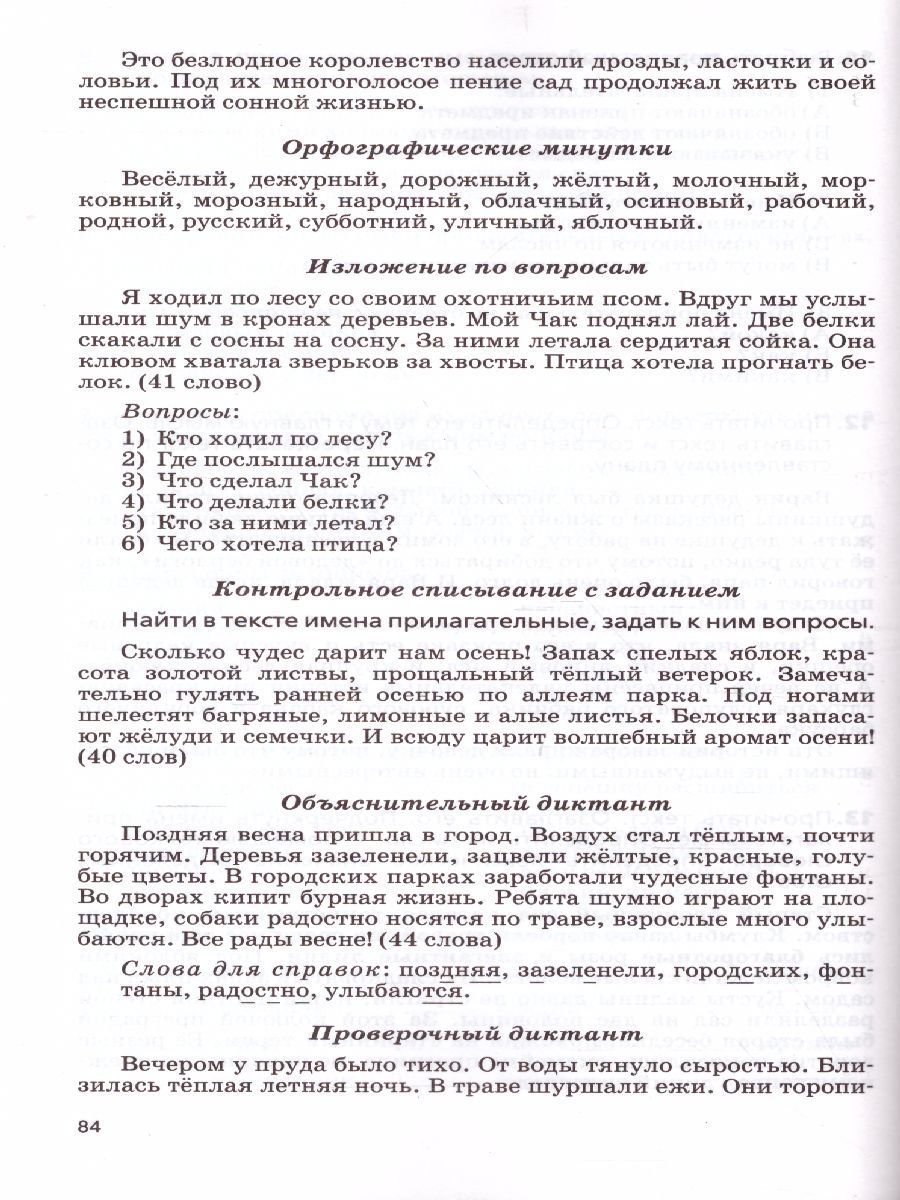 Пособие предназначено для учителей общеобразовательных организаций. В сборнике представлены обучающие тексты различных типов, контрольные диктанты, самостоятельные и творческие работы, по основным разделам курса «Русский язык» (1-2 годы обучения). Материал составлен с учётом требований ФГОС НОО и ориентирован на обязательный минимум содержания основных образовательных программ в действующих УМК по русскому языку. Пособие учитель может использовать для совершенствования грамматико-орфографических умений, а также для контроля за усвоением программы курса.Характеристики