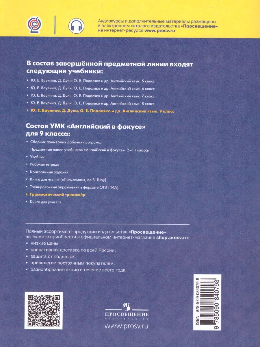 Английский в фокусе 9 класс. Spotlight. Грамматический тренажер