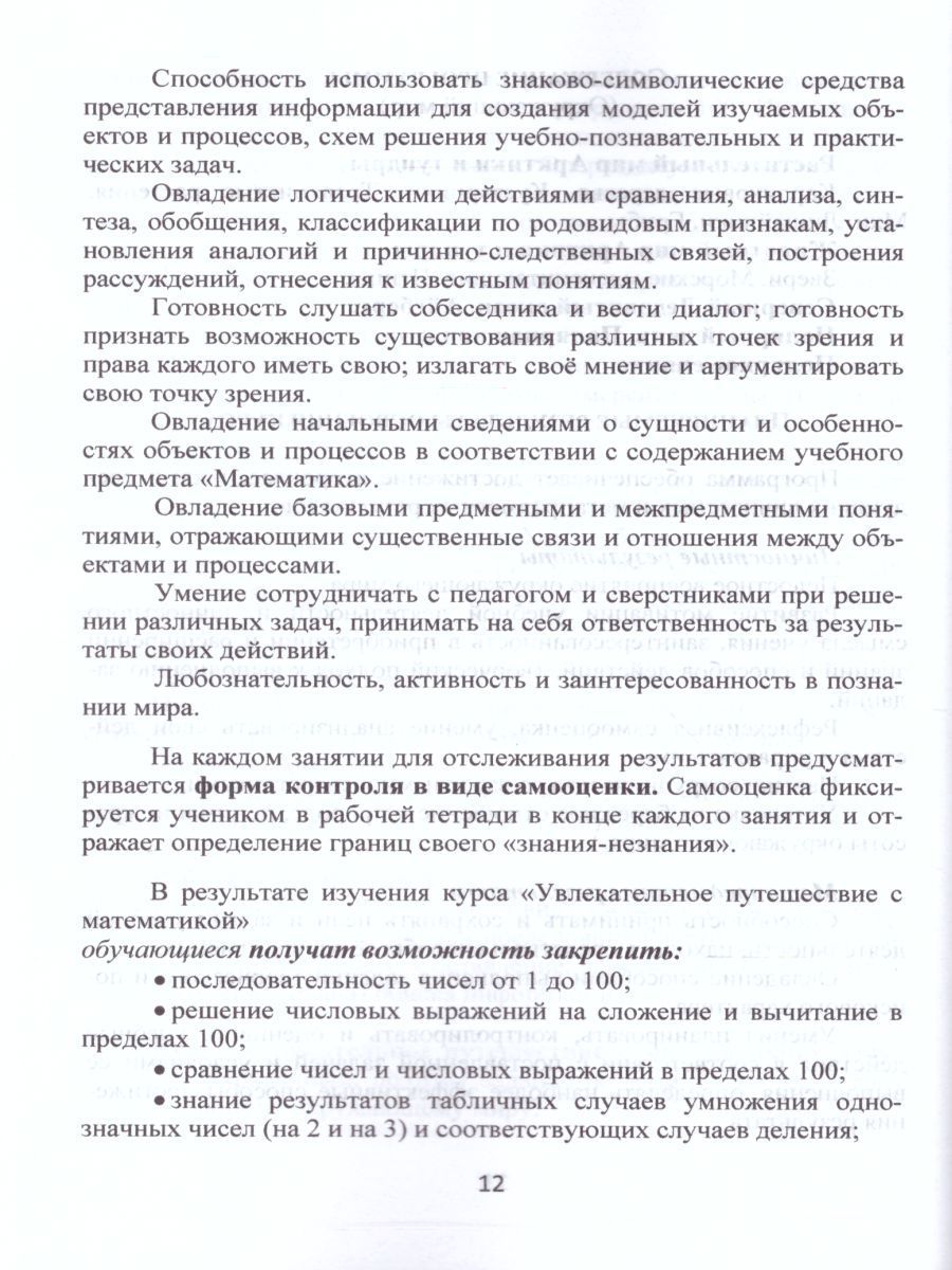 Увлекательное путешествие с математикой 2 класс. Программа внеурочной деятельности