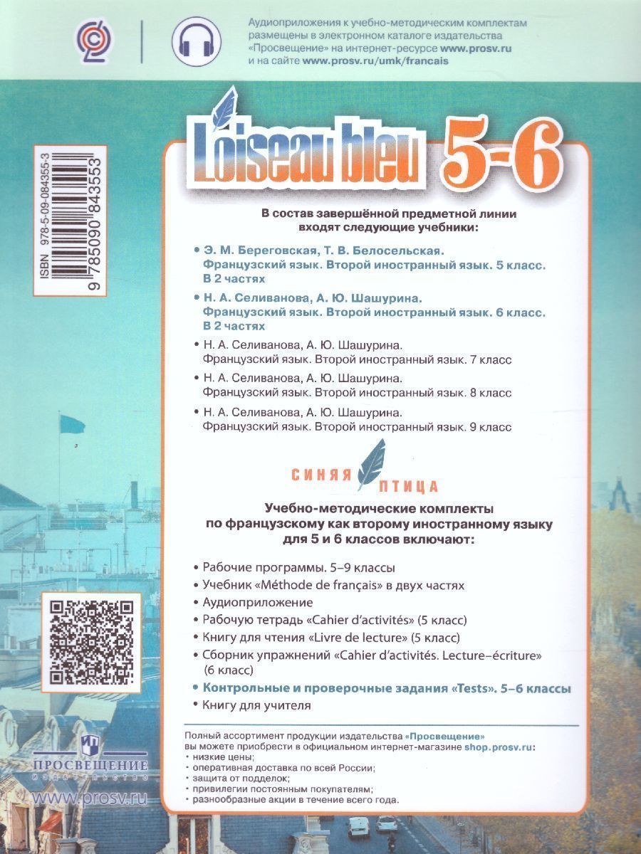 Французский язык 5-6 класс. Второй иностранный язык. Контрольно-проверочные задания. УМК "Синяя птица". ФГОС. Данное учебное пособие предназначено для изучающих французский как второй иностранный язык в 5-6 классах общеобразовательных организаций по УМК предметной линии "Синяя птица" (авторы Э.М. Береговская, Т.В. Белосельская, Н.А. Селиванова, А.Ю. Шашурина).Цель пособия - закрепить и организовать промежуточный и итоговый контроль изученного материала при обучении французскому языку. В процессе выполнения данных контрольных работ у учащихся сформируются универсальные умения и навыки работы с тестовыми заданиями, которые пригодятся им в дальнейшей учебной деятельности.Характеристики