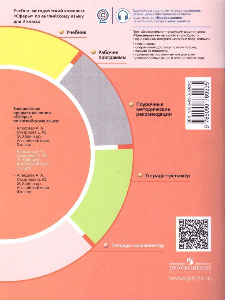 Тетрадь-экзаменатор является одним из компонентов учебно-методического комплекса по английскому языку серии "Сферы" и предназначена для учащихся 3 классов общеобразовательных организаций. Пособие содержит проверочные и контрольные работы к каждому тематическому циклу учебника. Проверочные и контрольные работы позволят объективно оценить знания и прогресс учащихся по завершении каждого цикла учебника. Аудиокурс в формате MP3 к заданиям для аудирования можно бесплатно скачать с сайта производителя.Характеристики