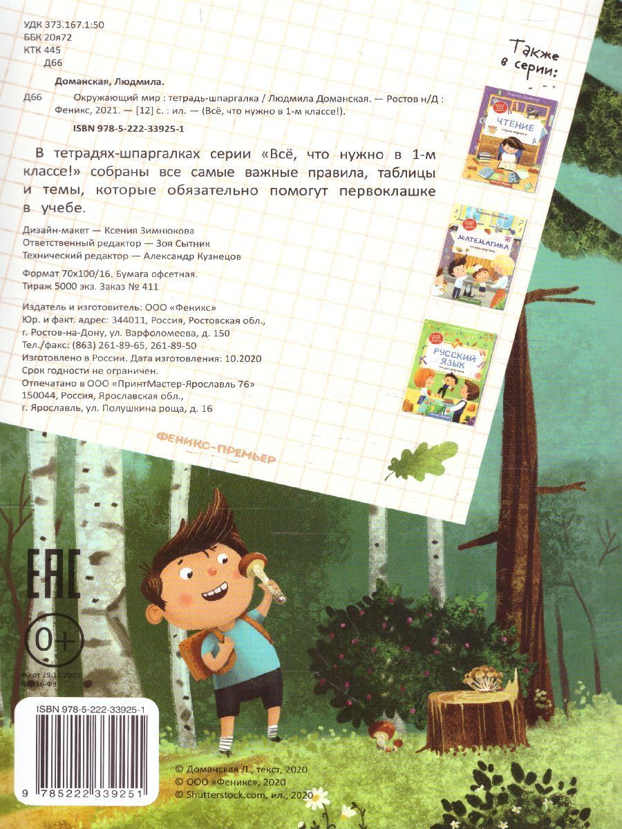 В тетрадях-шпаргалках серии «Всё, что нужно в 1-м классе!» собраны все самые важные правила, таблицы и темы, которые обязательно помогут первоклашке в учебе.Характеристики