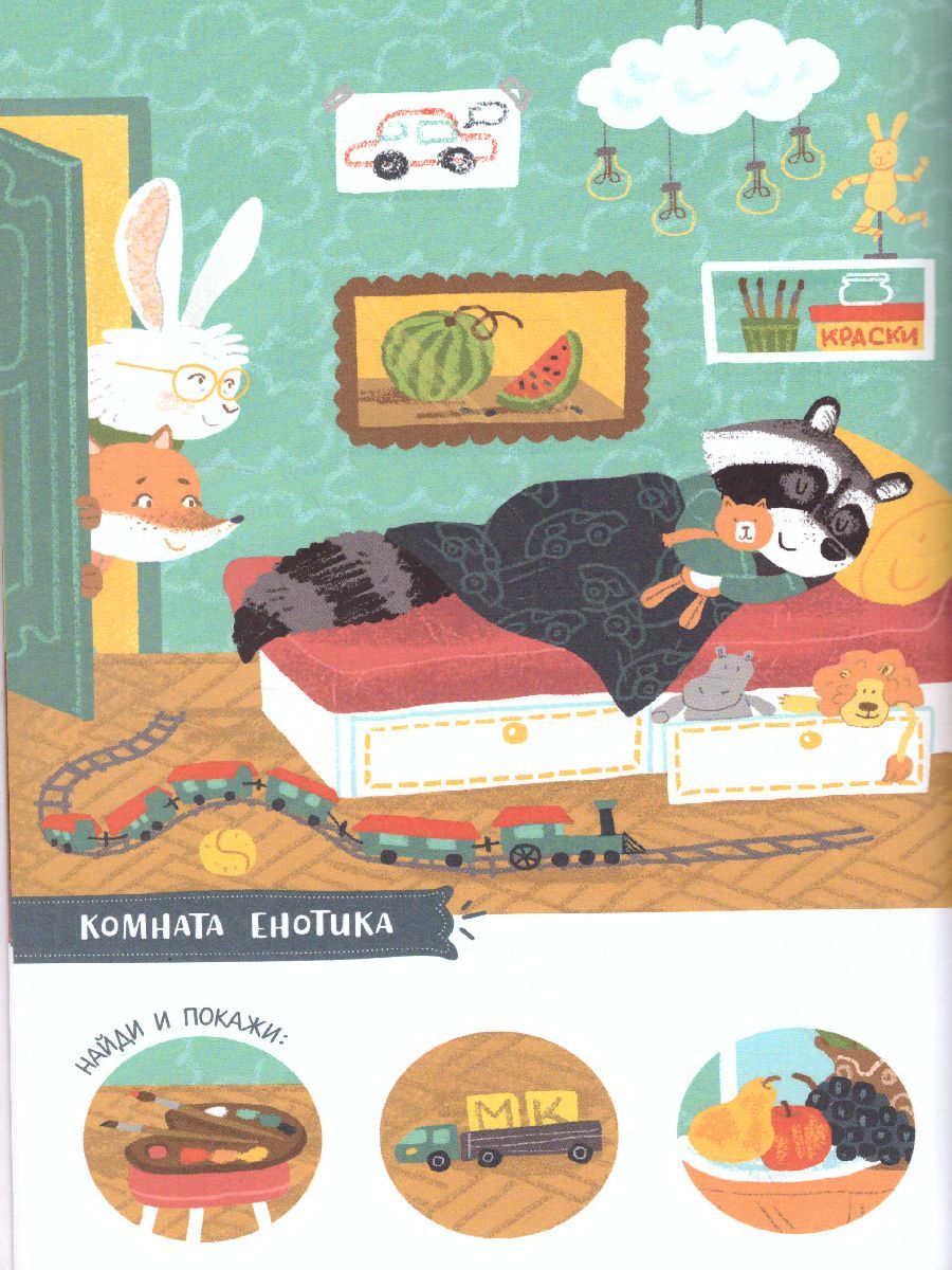 Как хорошо погостить у бабушки и дедушки В ДЕРЕВНЕ ЛЕТОМ! Лисичка, Зайчик и Енотик проводят время на природе весело и с пользой. Они купаются в речке, катаются на велосипедах, ходят в лес за ягодами и грибами, а ещё - на рыбалку, помогают в саду и огороде. Дел летом много! А потом вспоминать о лете, перелистывая страницы этой книги. Играть с книгой очень просто: разглядываем детали, запоминаем, ищем и показываем их на большой картинке. А еще знакомимся с окружающим миром, общаемся и расширяем словарный запас. Бонус для самых наблюдательных: в книге спрятались 15 божьих коровок. Книги серии "Найди и покажи" развивают внимание, зрительную память, речь и воображение. Это прекрасный способ провести время с ребенком с пользой и удовольствием. Для детей младшего дошкольного возраста.Характеристики