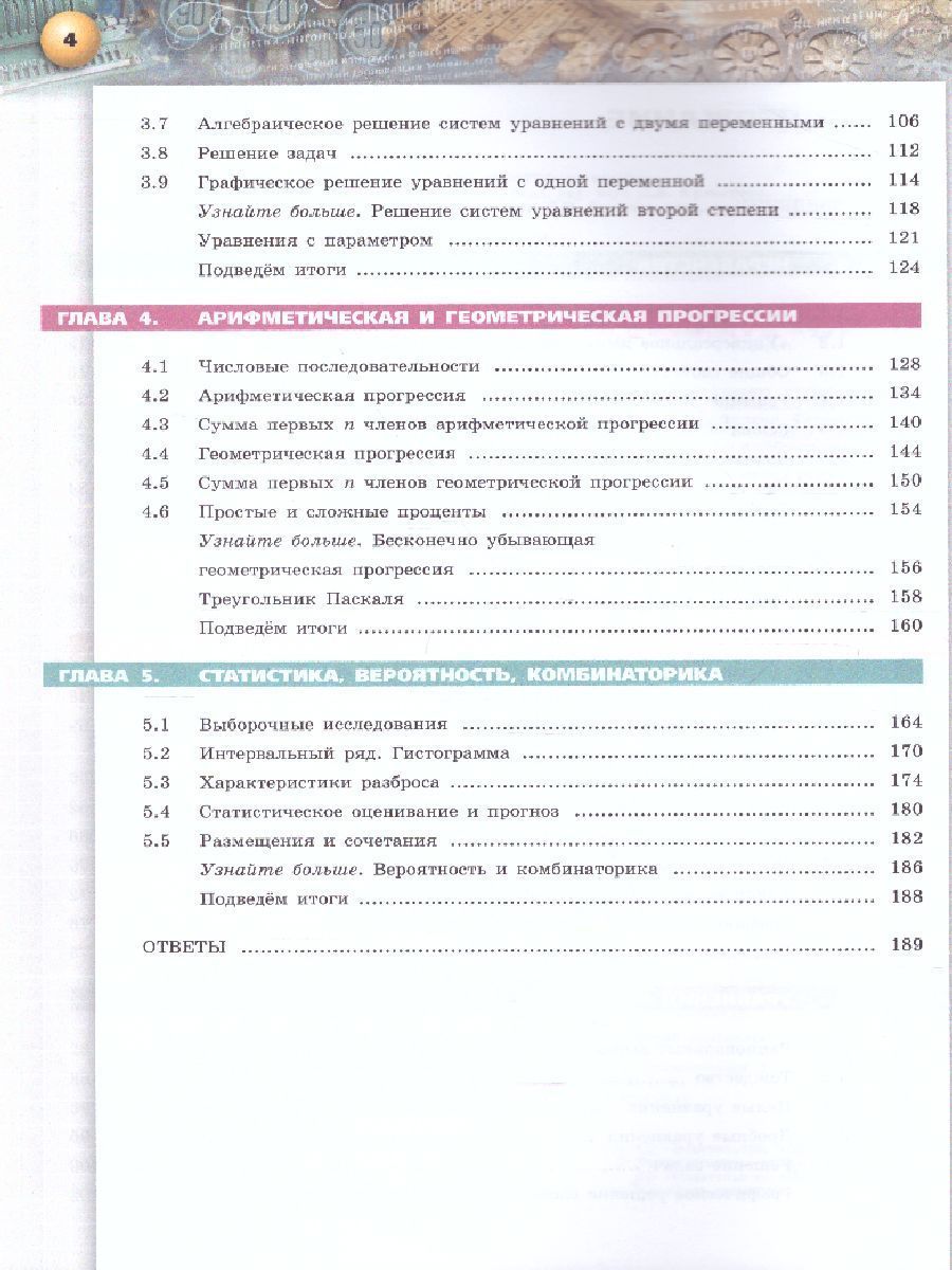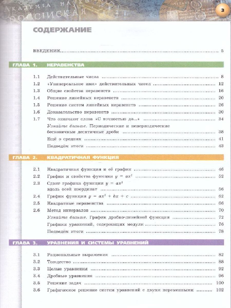 Учебник по алгебре 9 класса продолжает линию учебно-методических комплексов "Сферы" по математике, начатую учебниками для 5–8 классов. Издание подготовлено в соответствии с требованиями Федерального государственного образовательного стандарта. Материал курса направлен на формирование центральных алгебраических понятий и развитие умения применять их при решении как математических задач, так и задач прикладного характера. Главными особенностями пособия является фиксированный в тематических разворотах формат, лаконичность и жёсткая структурированность текста, структурированность системы упражнений, разнообразный иллюстративный ряд. Всё это направляет учащихся на осознанное овладение универсальными учебными действиями.Характеристики