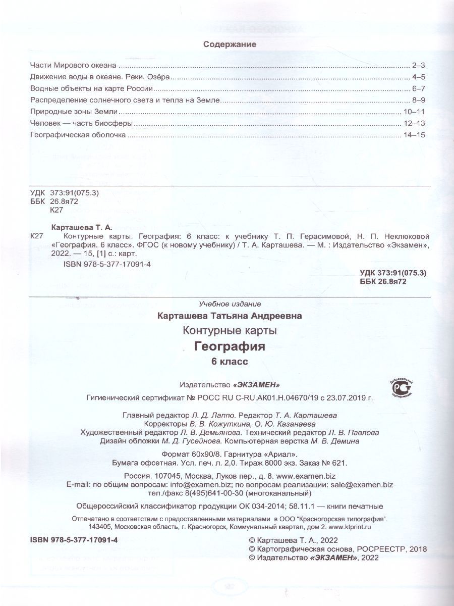 География 6 класс. Контурные карты. Классическая география. ФГОС