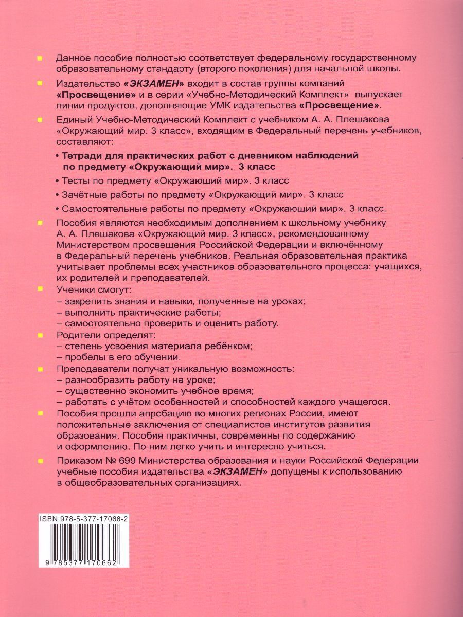 Окружающий мир 3 класс. Тетрадь для практических работ с дневником наблюдений. Часть 2ФГОС